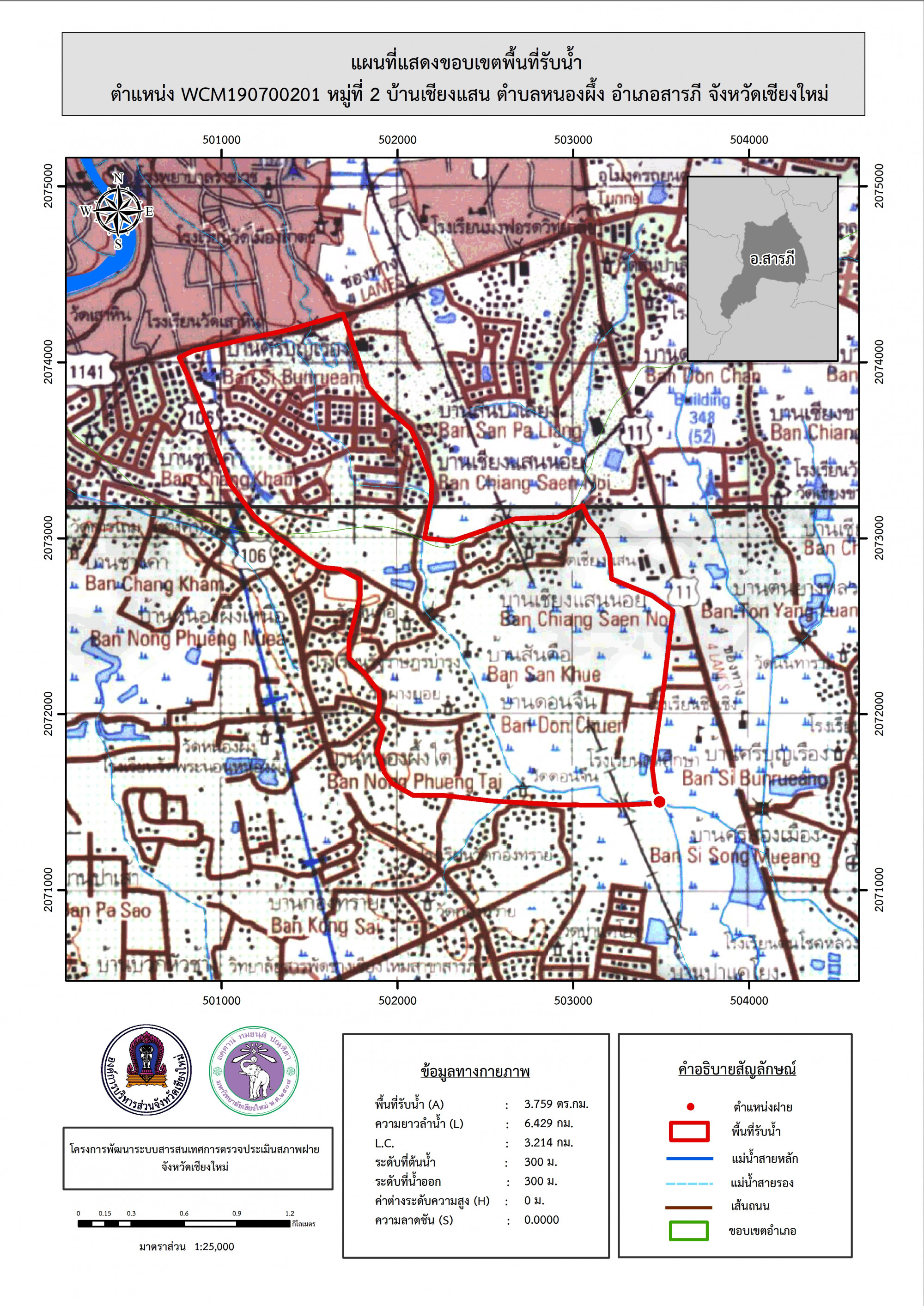 รูปภาพแผนที่แสดงขอบเขตพื้นที่รับน้ำ