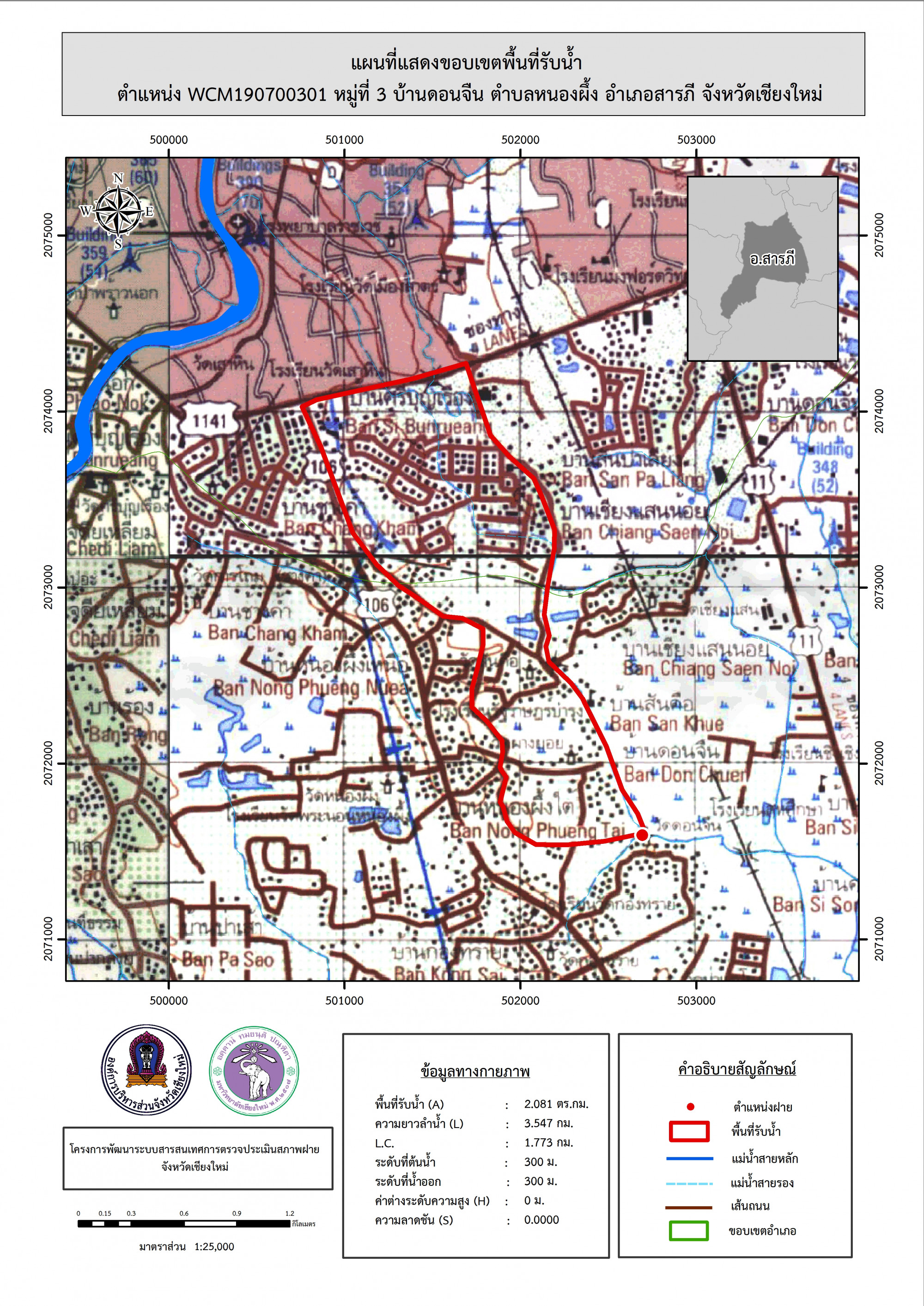 รูปภาพแผนที่แสดงขอบเขตพื้นที่รับน้ำ