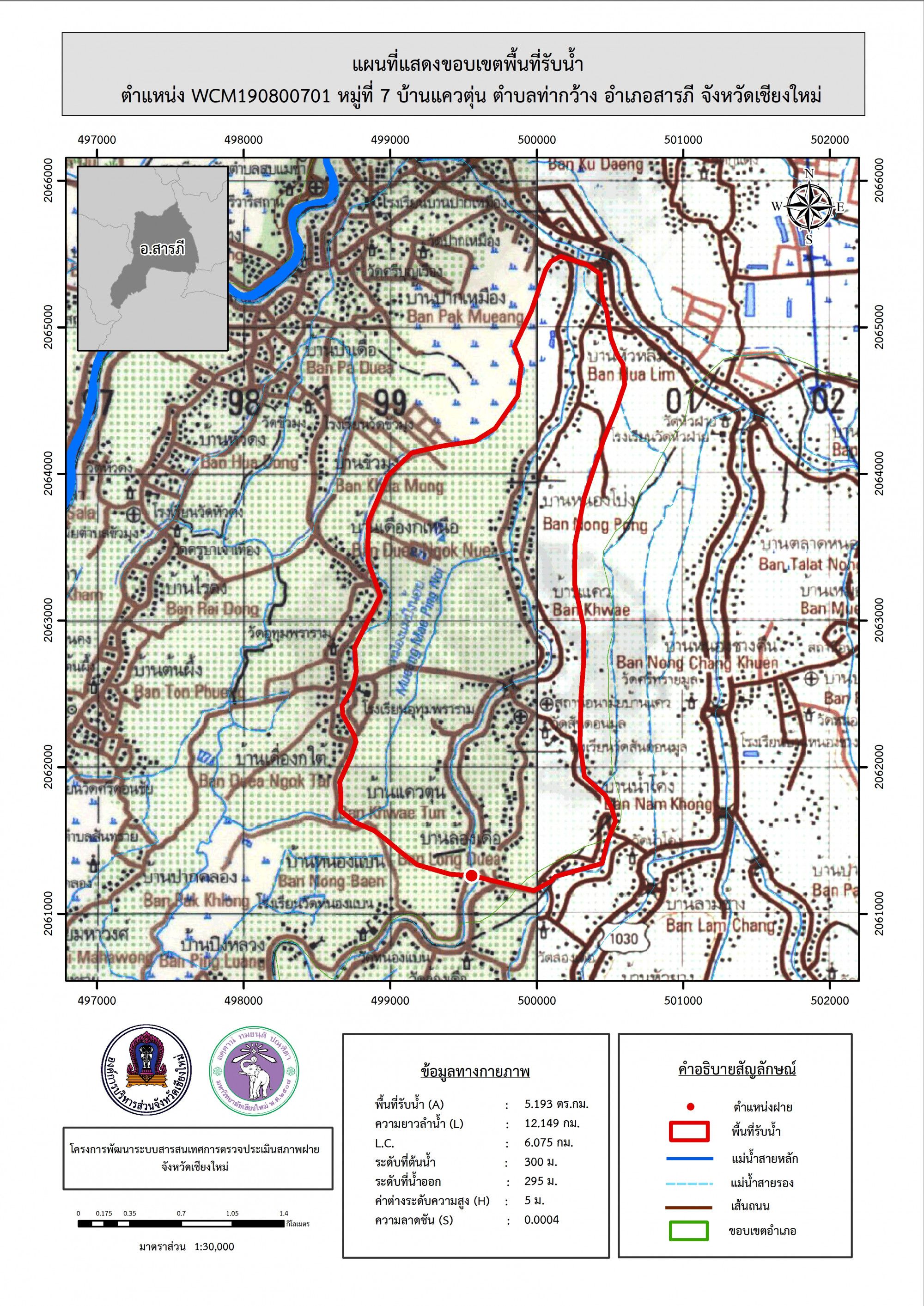 รูปภาพแผนที่แสดงขอบเขตพื้นที่รับน้ำ