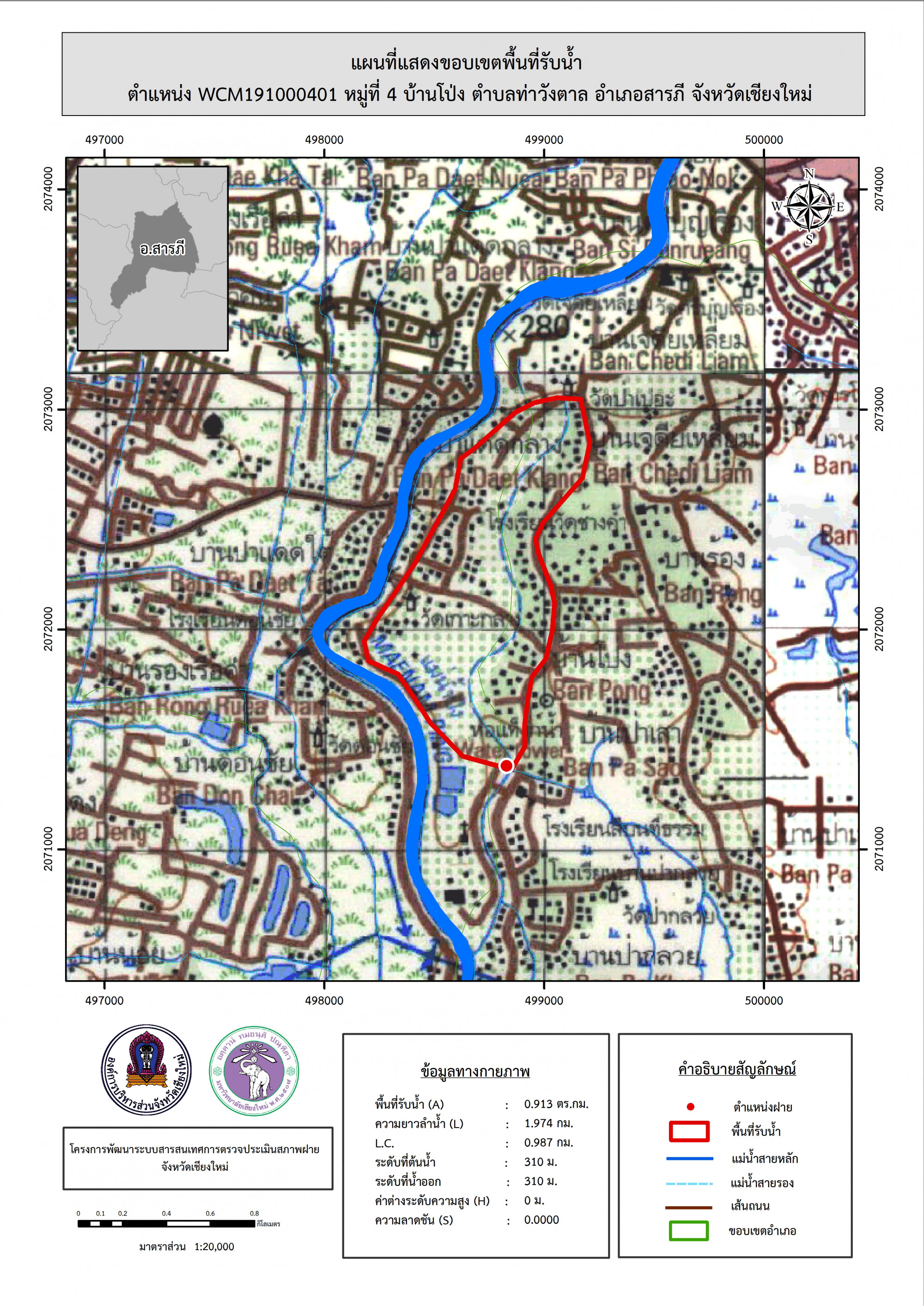 รูปภาพแผนที่แสดงขอบเขตพื้นที่รับน้ำ
