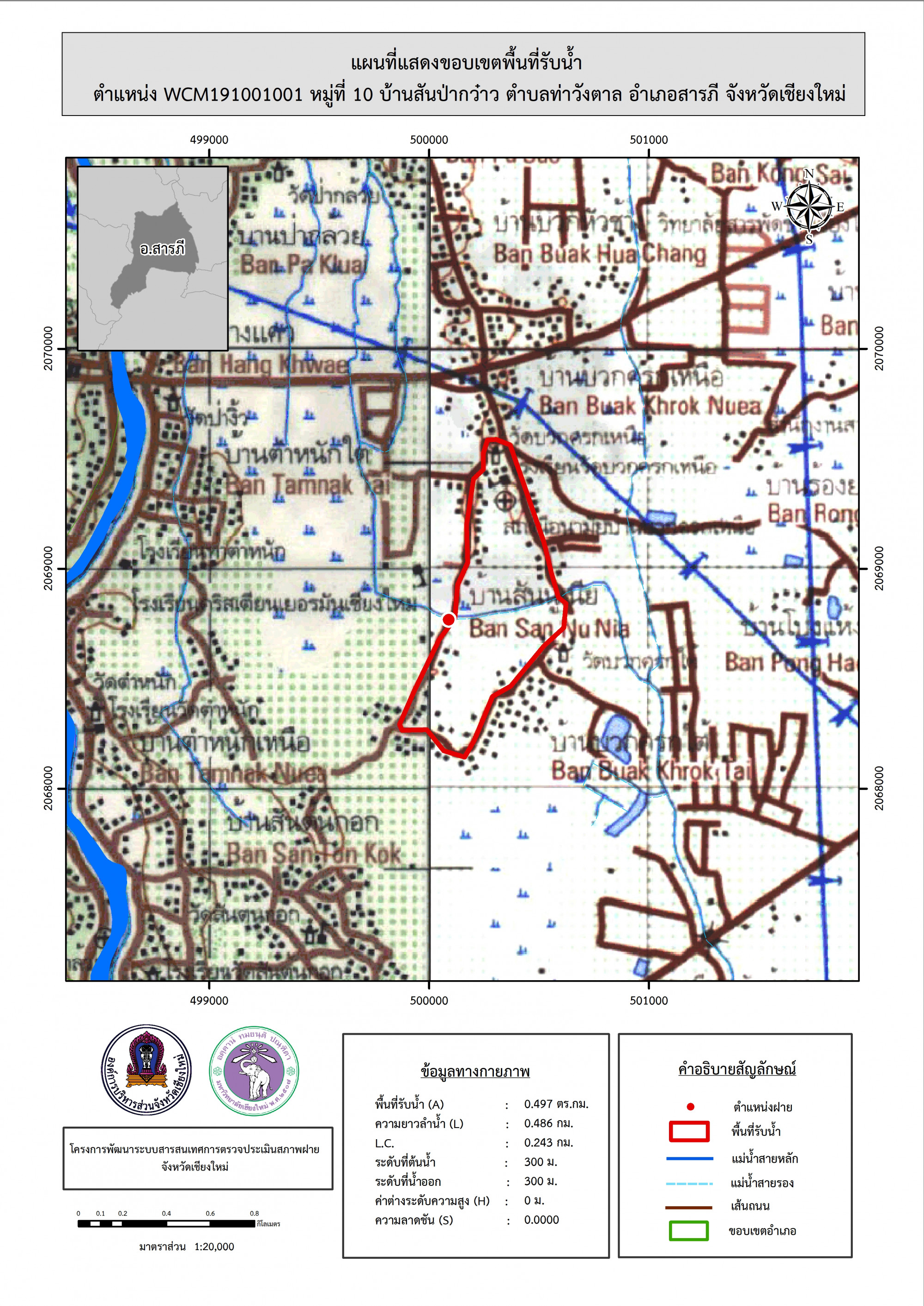 รูปภาพแผนที่แสดงขอบเขตพื้นที่รับน้ำ