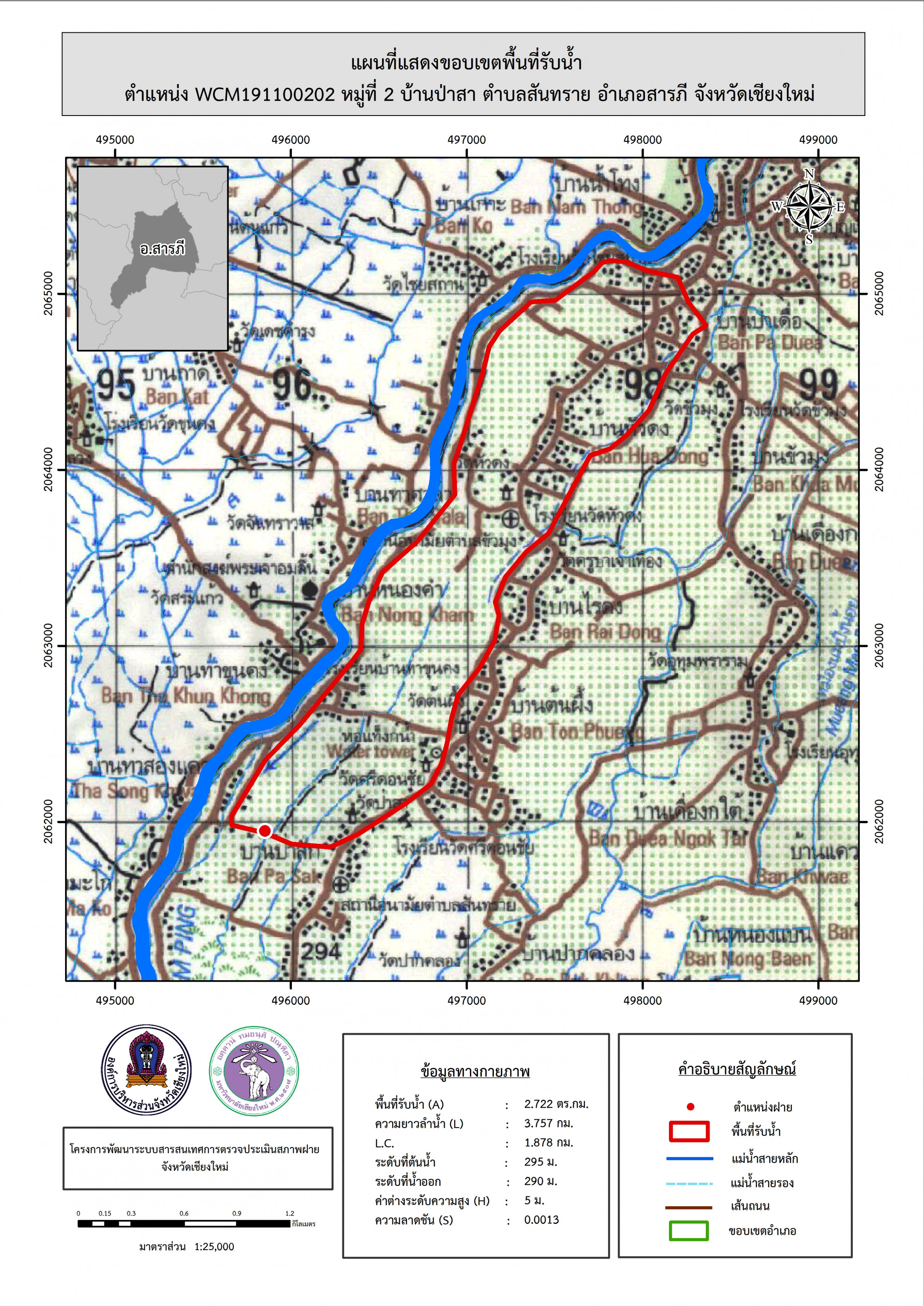 รูปภาพแผนที่แสดงขอบเขตพื้นที่รับน้ำ