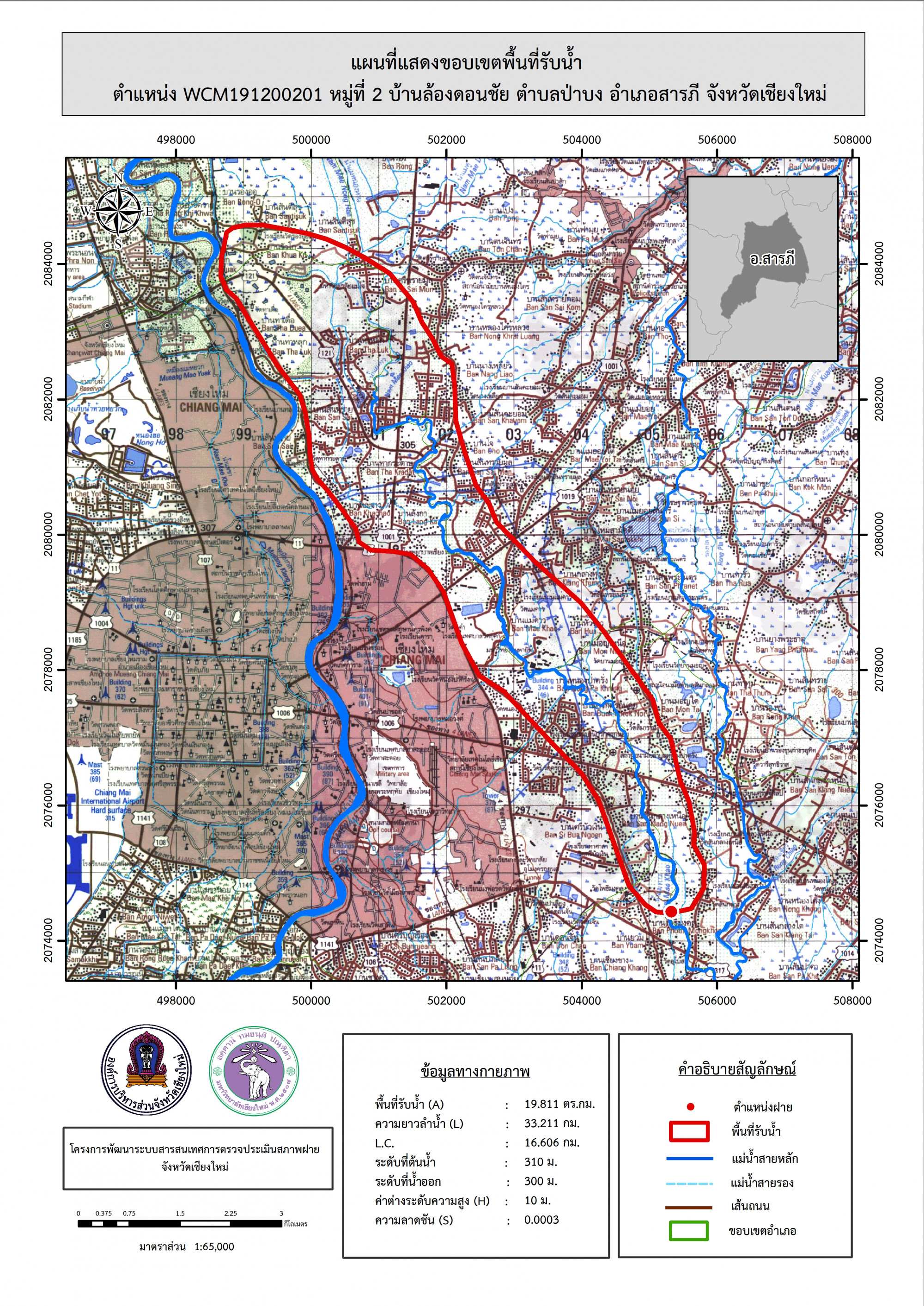 รูปภาพแผนที่แสดงขอบเขตพื้นที่รับน้ำ