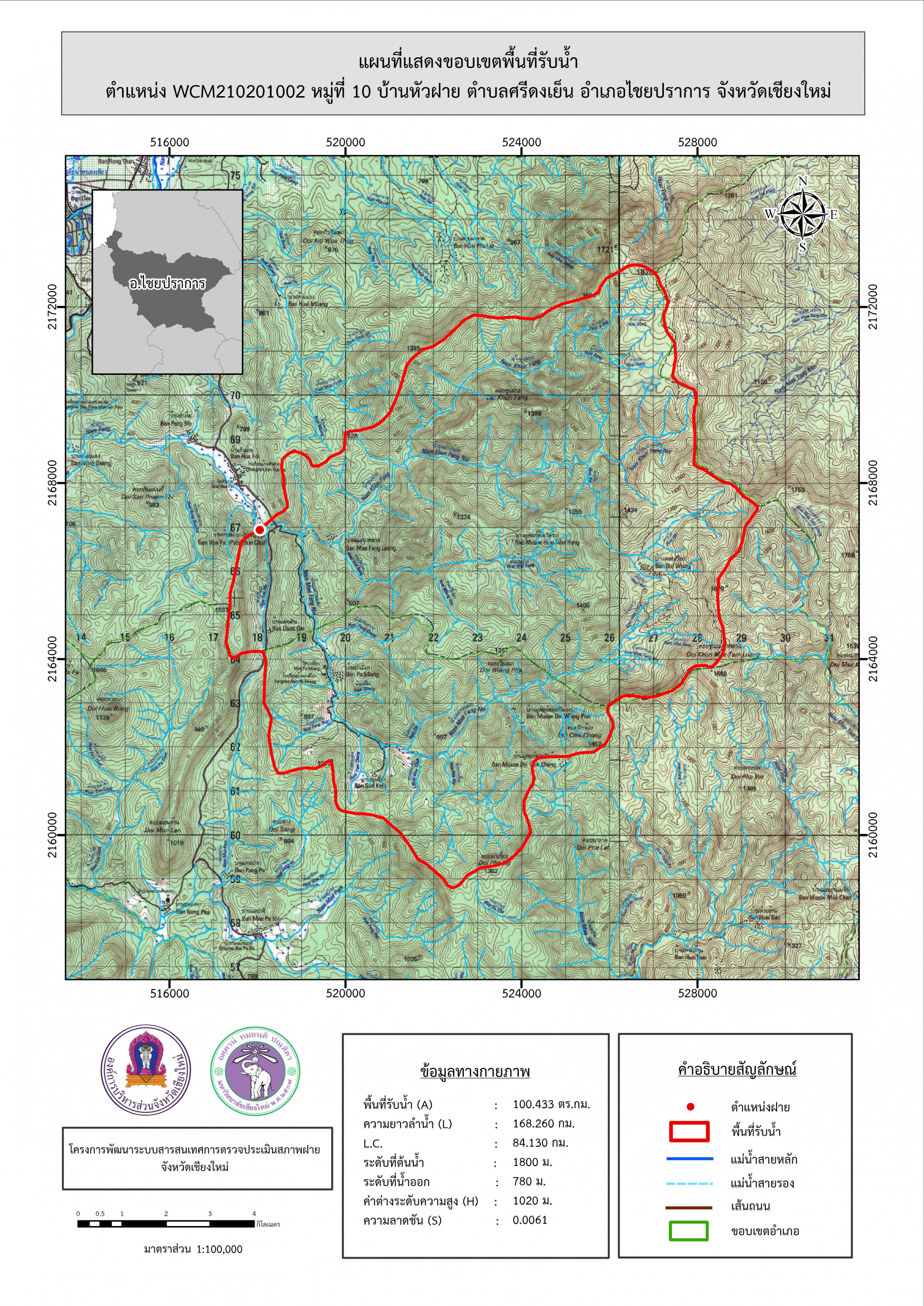 รูปภาพแผนที่แสดงขอบเขตพื้นที่รับน้ำ
