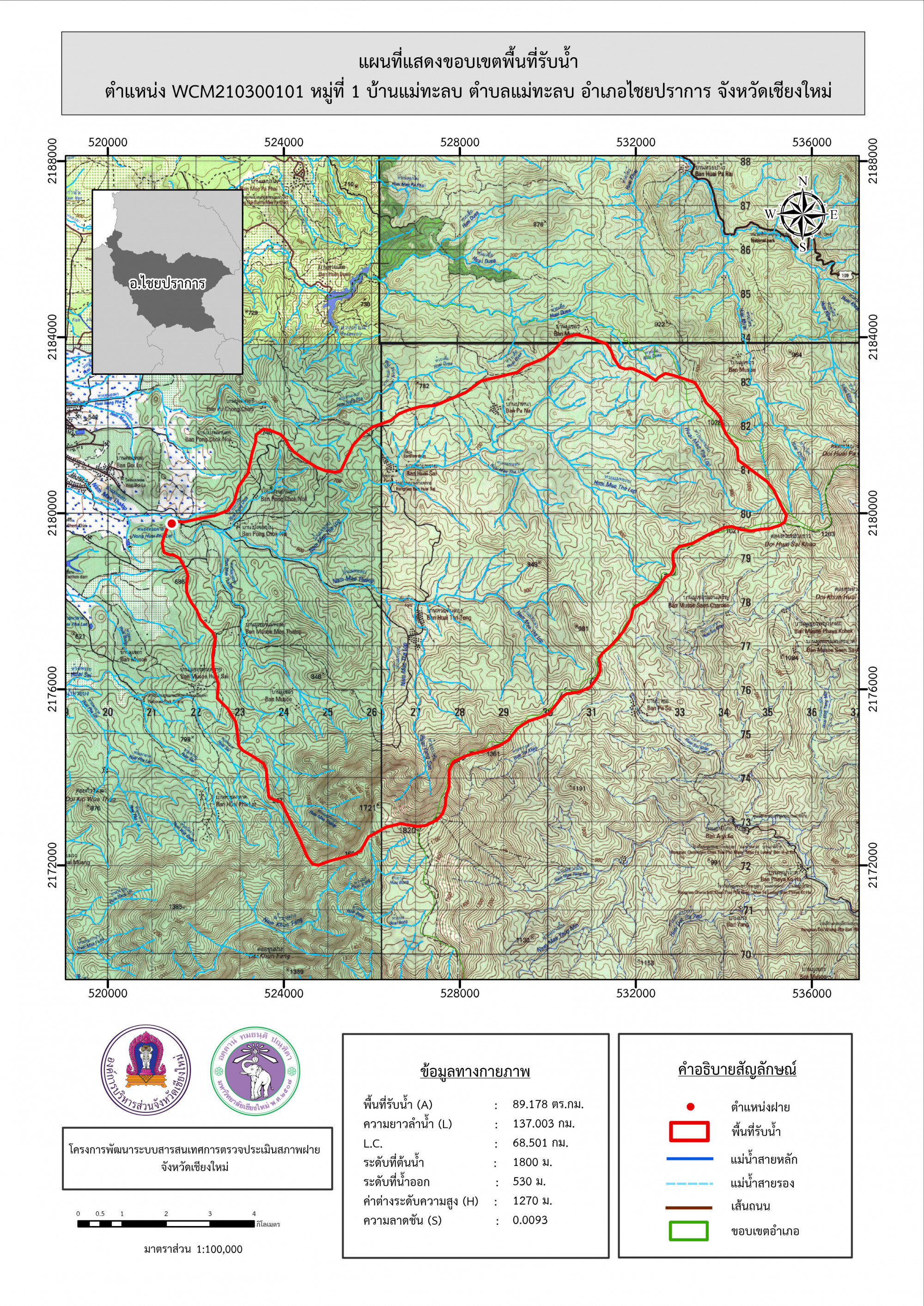 รูปภาพแผนที่แสดงขอบเขตพื้นที่รับน้ำ