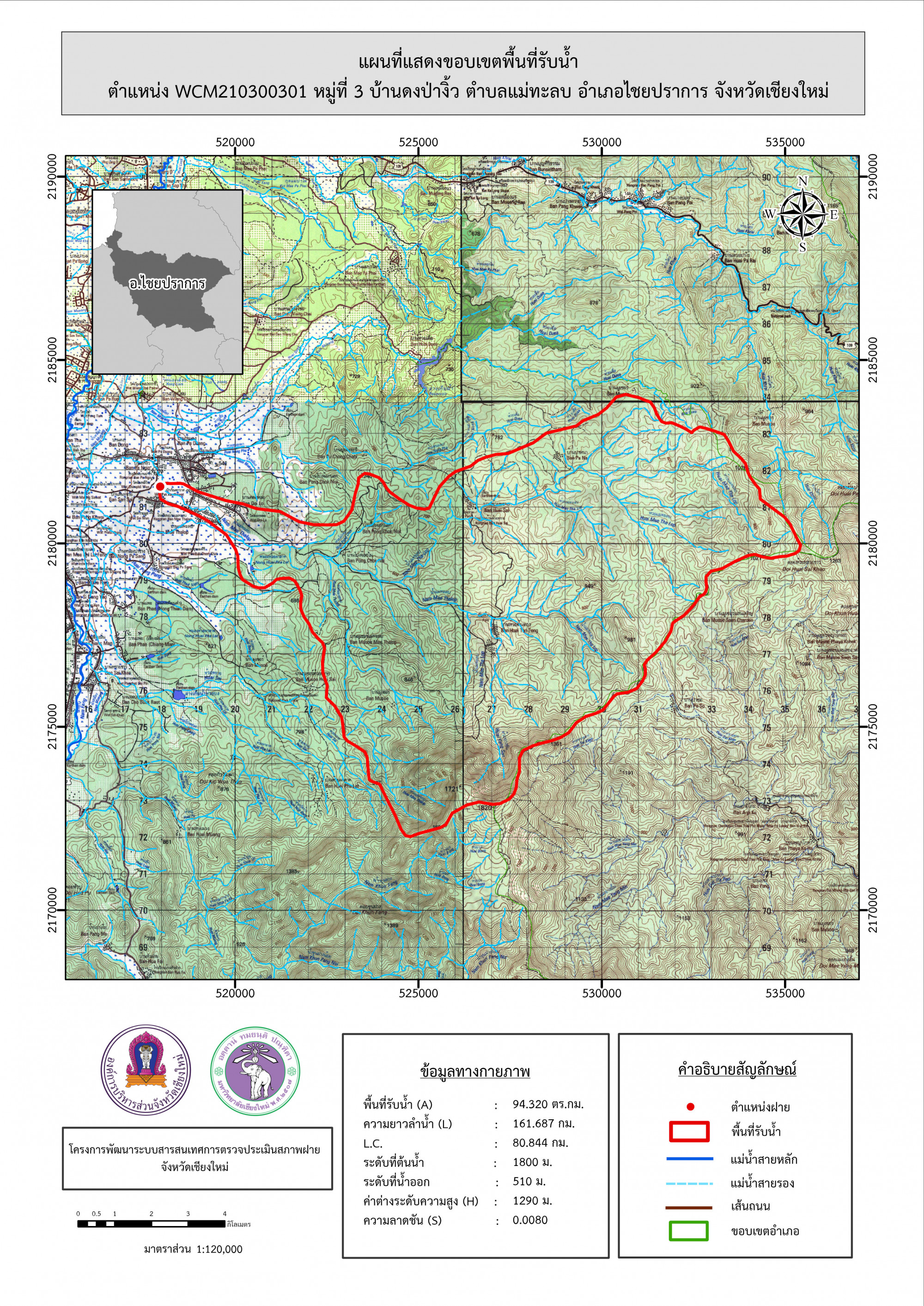 รูปภาพแผนที่แสดงขอบเขตพื้นที่รับน้ำ