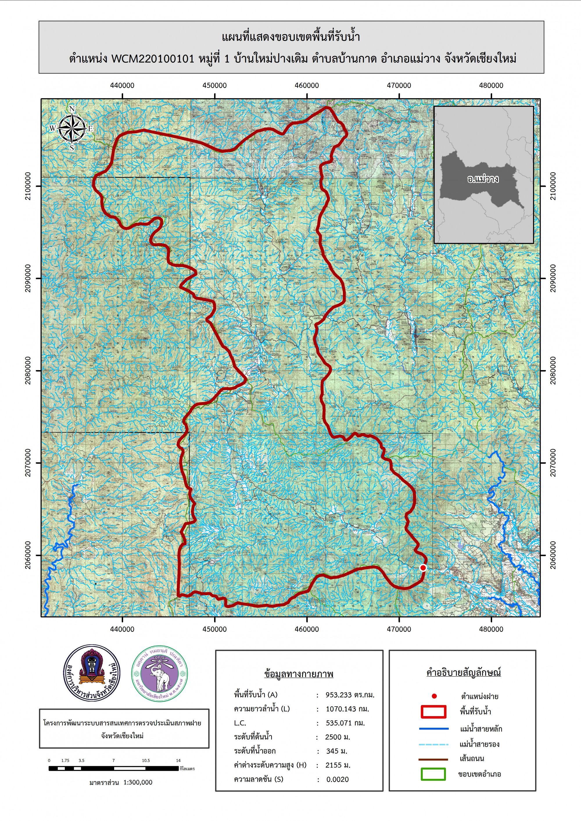 รูปภาพแผนที่แสดงขอบเขตพื้นที่รับน้ำ