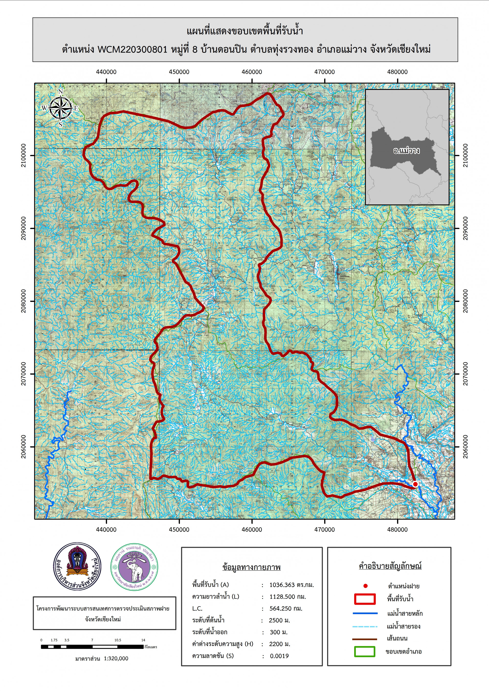 รูปภาพแผนที่แสดงขอบเขตพื้นที่รับน้ำ