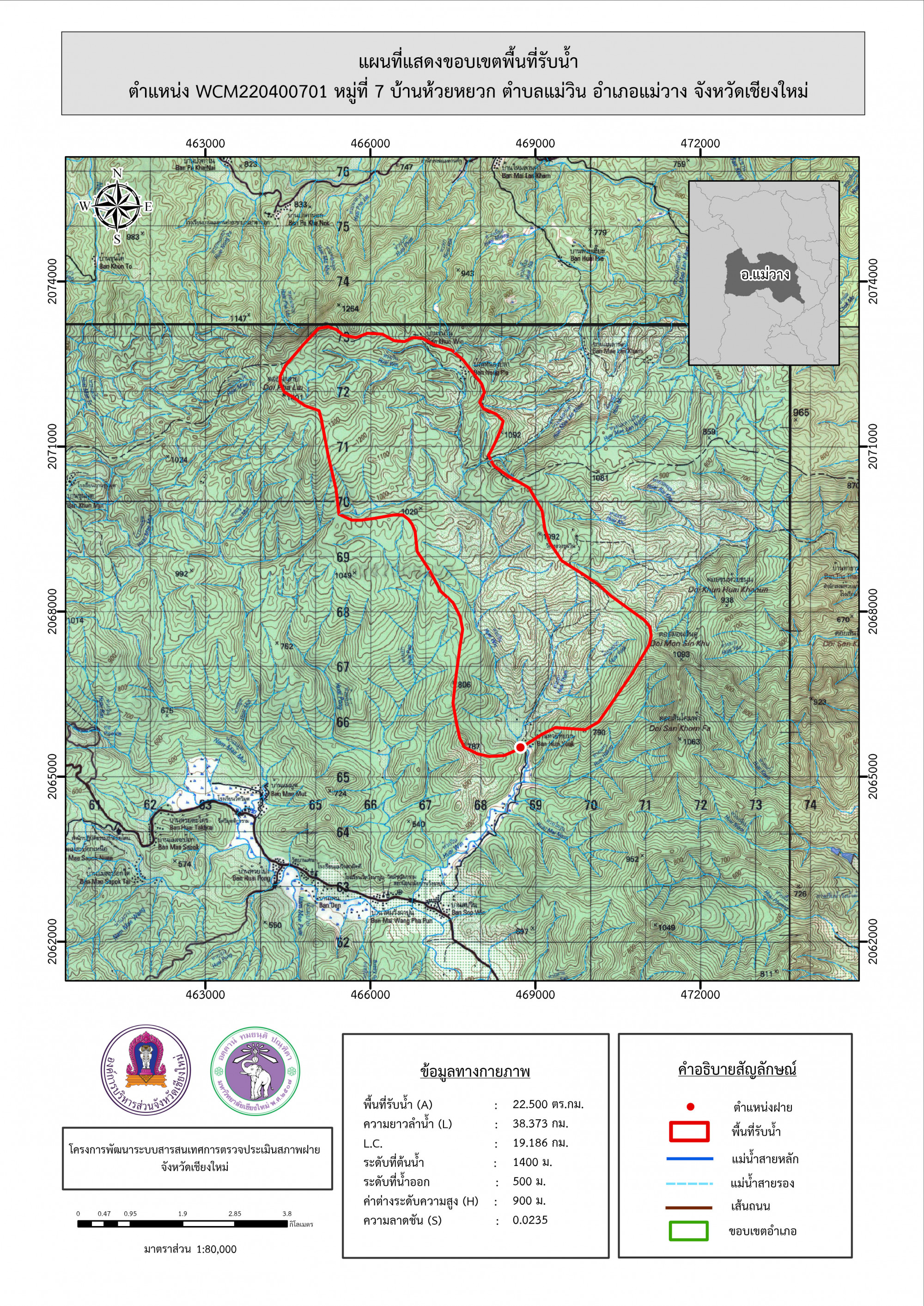 รูปภาพแผนที่แสดงขอบเขตพื้นที่รับน้ำ