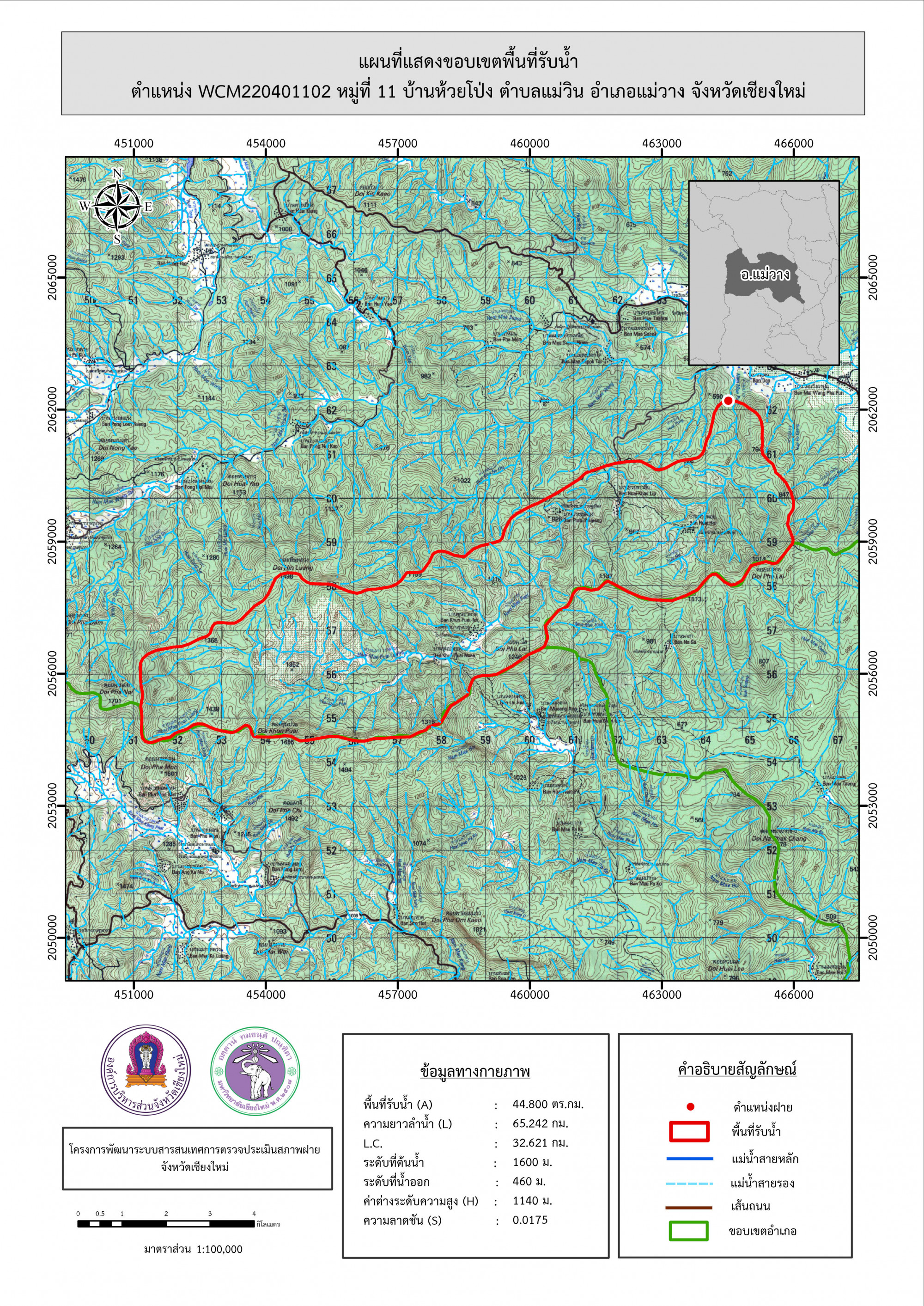 รูปภาพแผนที่แสดงขอบเขตพื้นที่รับน้ำ