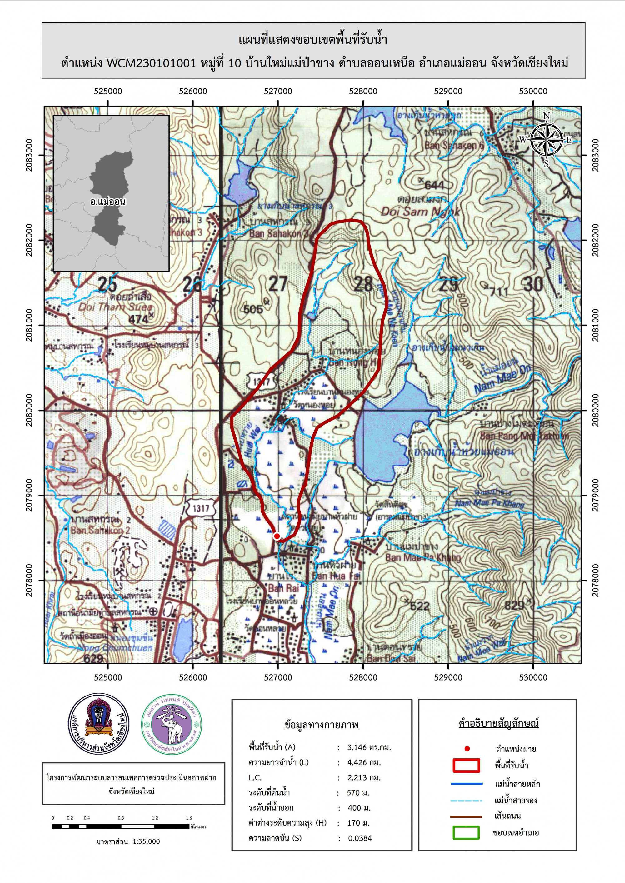 รูปภาพแผนที่แสดงขอบเขตพื้นที่รับน้ำ