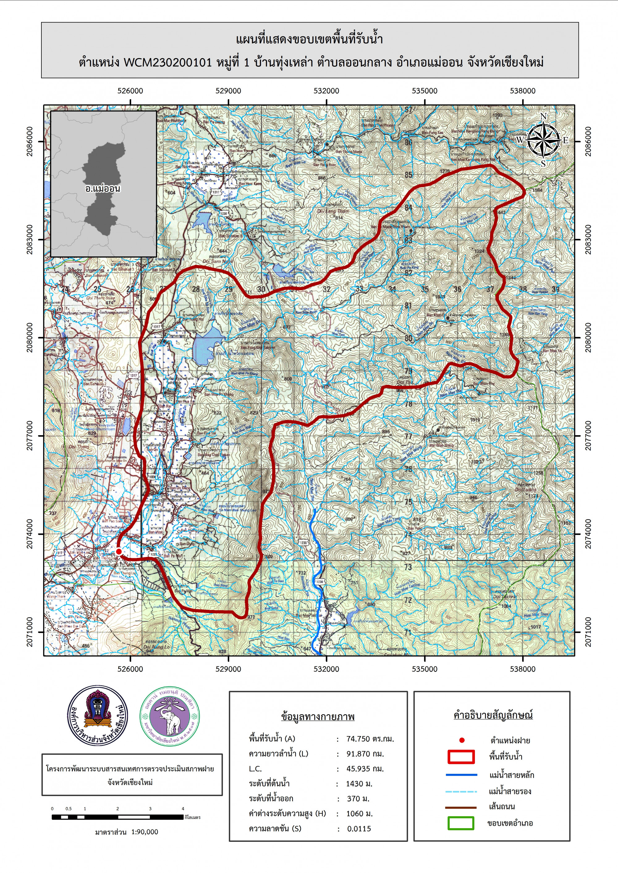 รูปภาพแผนที่แสดงขอบเขตพื้นที่รับน้ำ