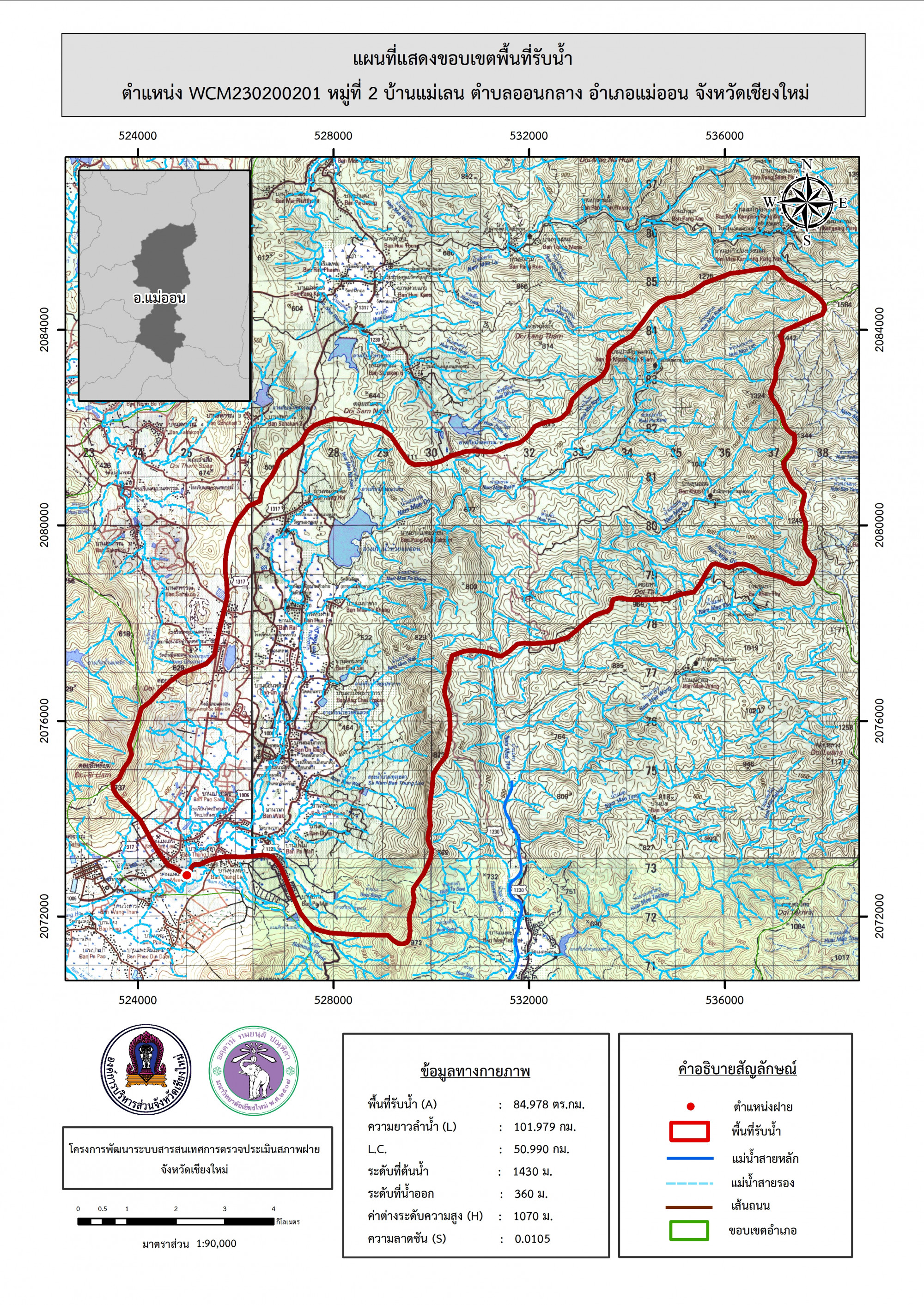 รูปภาพแผนที่แสดงขอบเขตพื้นที่รับน้ำ
