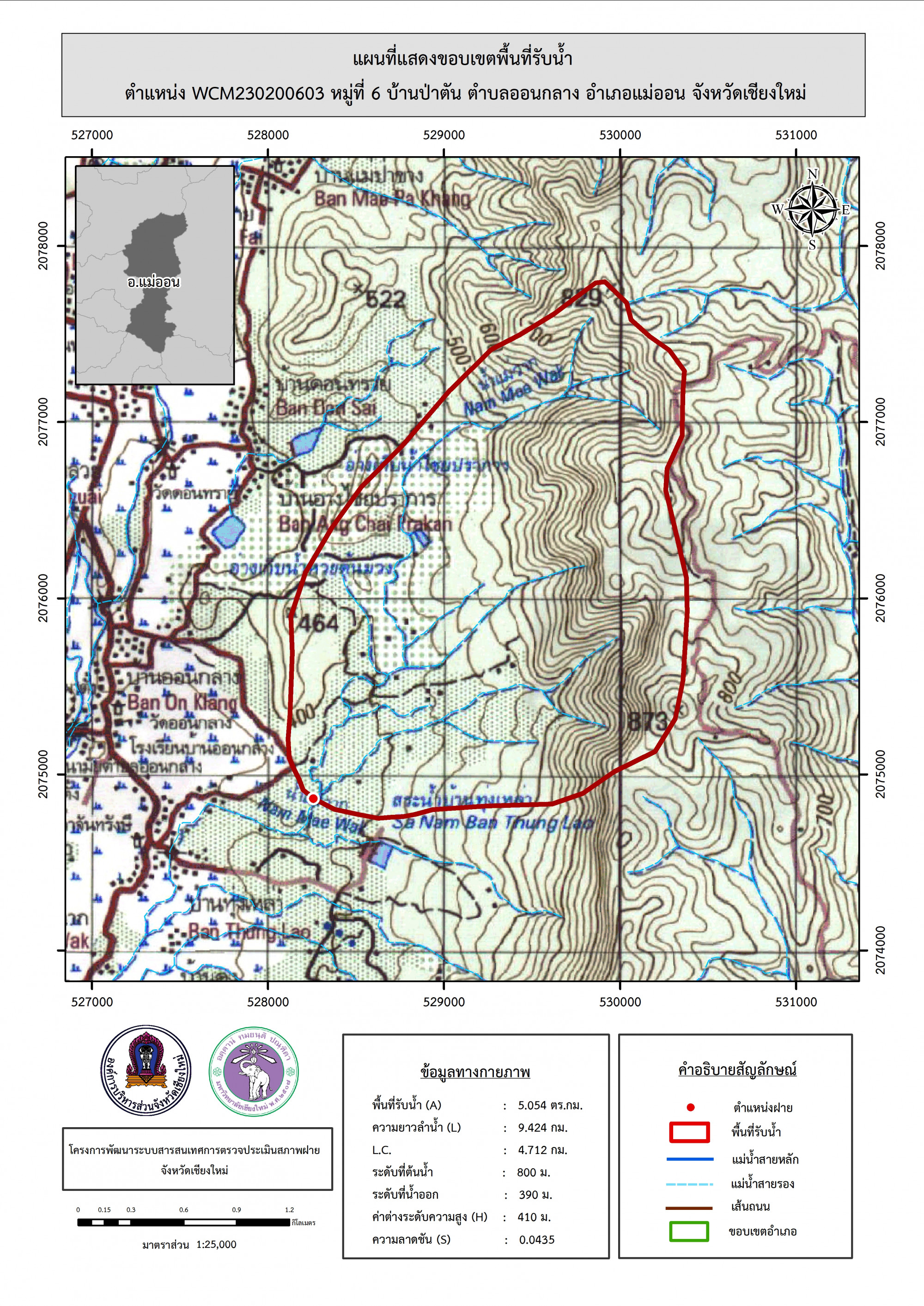 รูปภาพแผนที่แสดงขอบเขตพื้นที่รับน้ำ