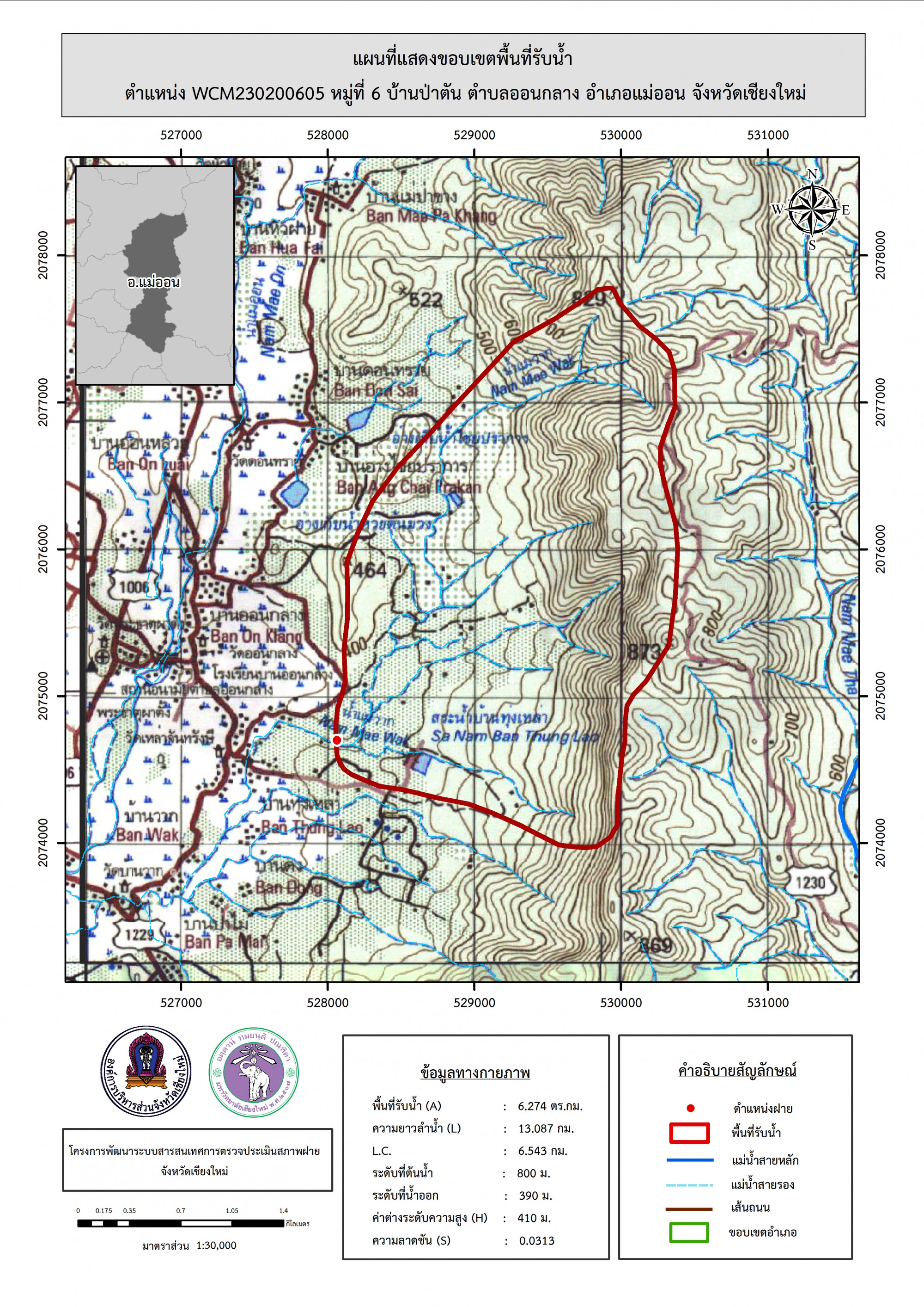 รูปภาพแผนที่แสดงขอบเขตพื้นที่รับน้ำ