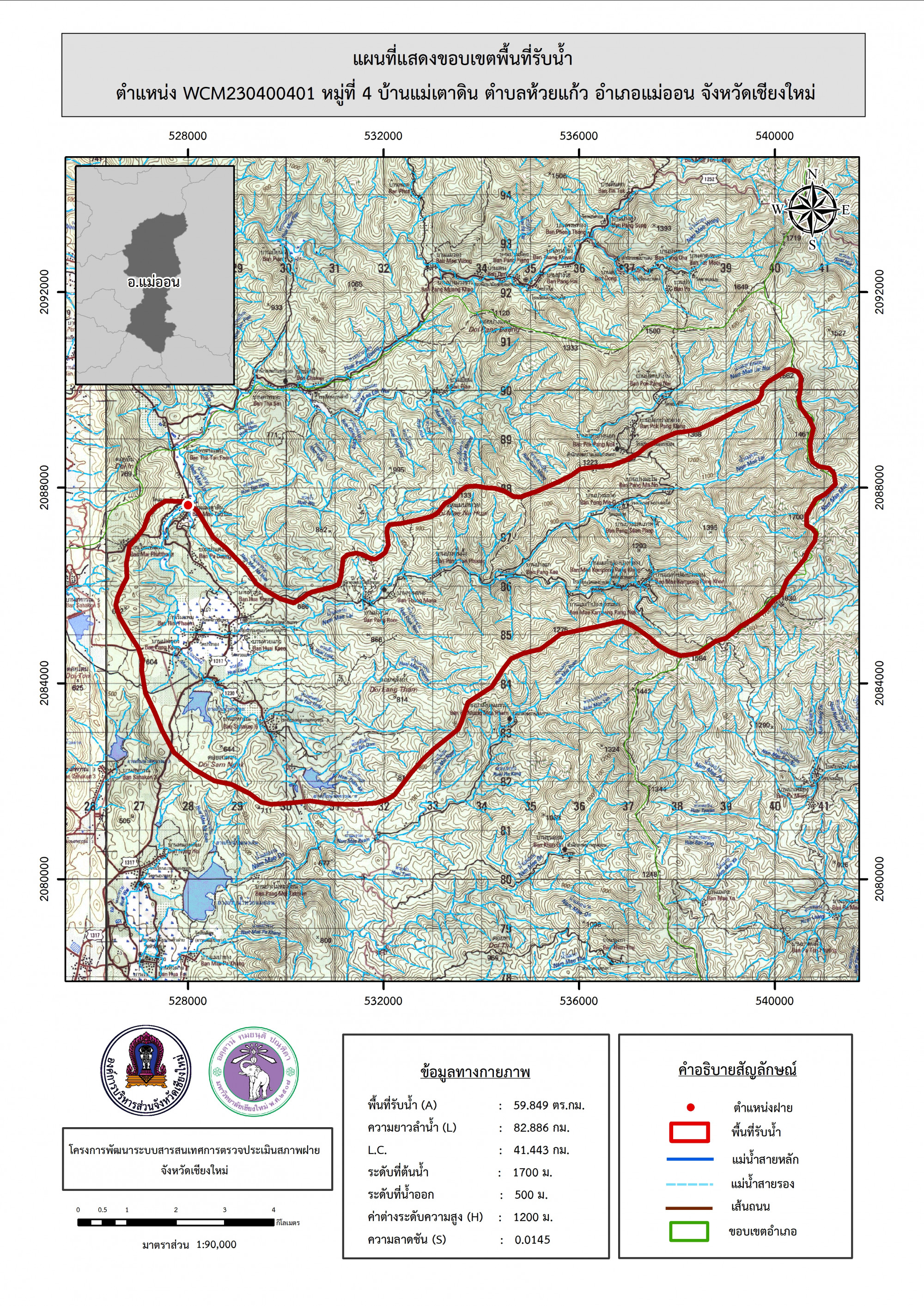 รูปภาพแผนที่แสดงขอบเขตพื้นที่รับน้ำ