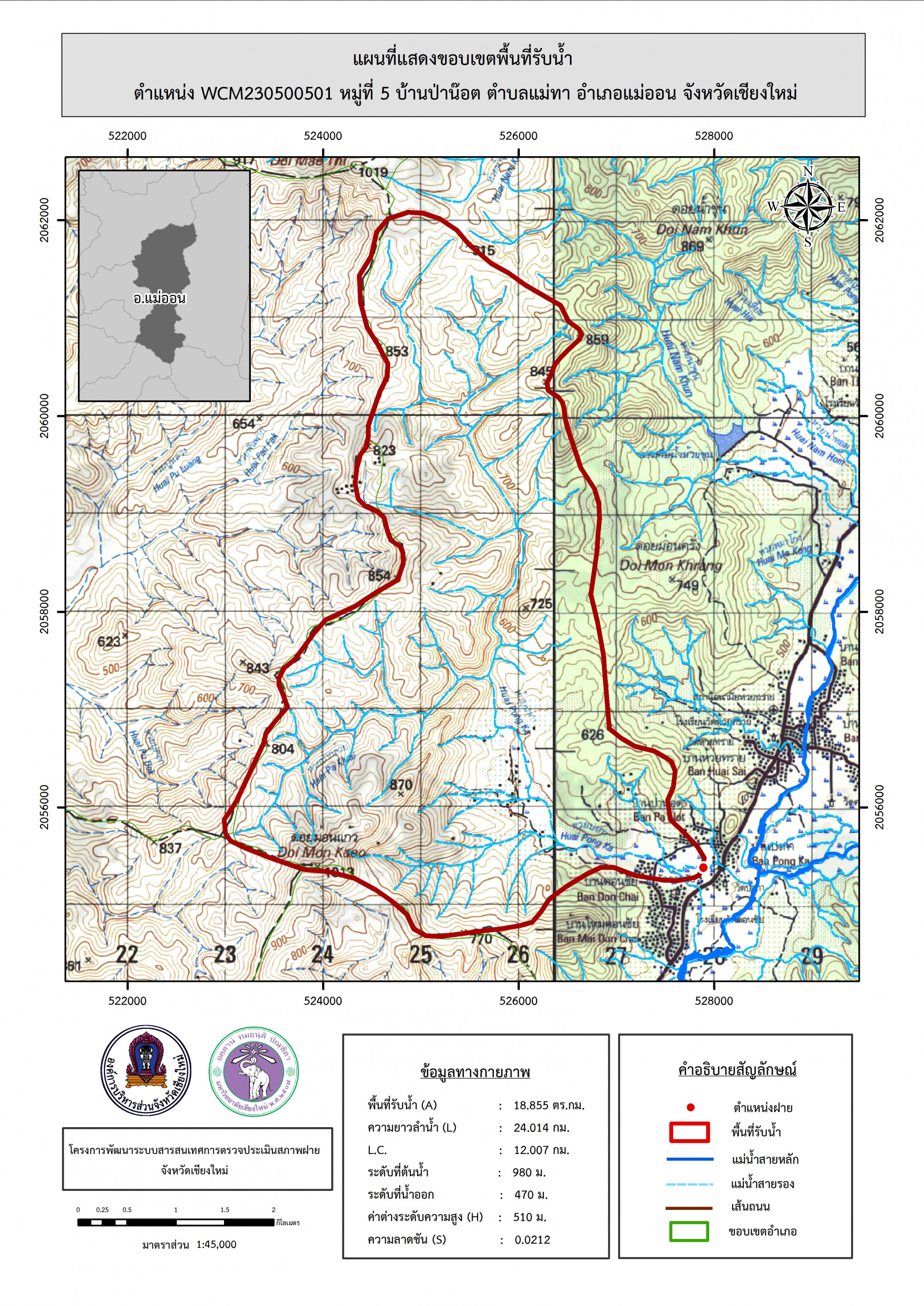 รูปภาพแผนที่แสดงขอบเขตพื้นที่รับน้ำ