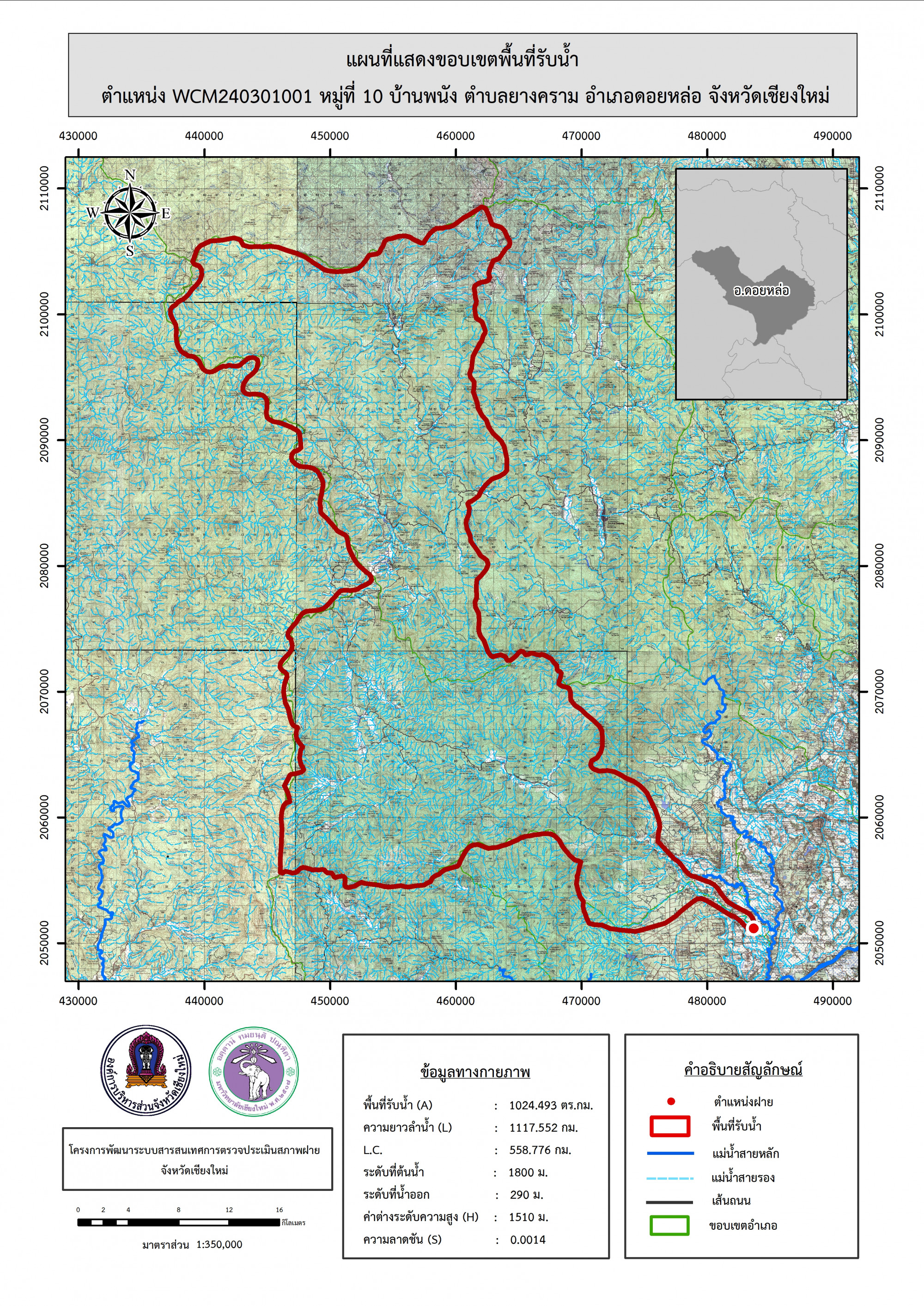 รูปภาพแผนที่แสดงขอบเขตพื้นที่รับน้ำ