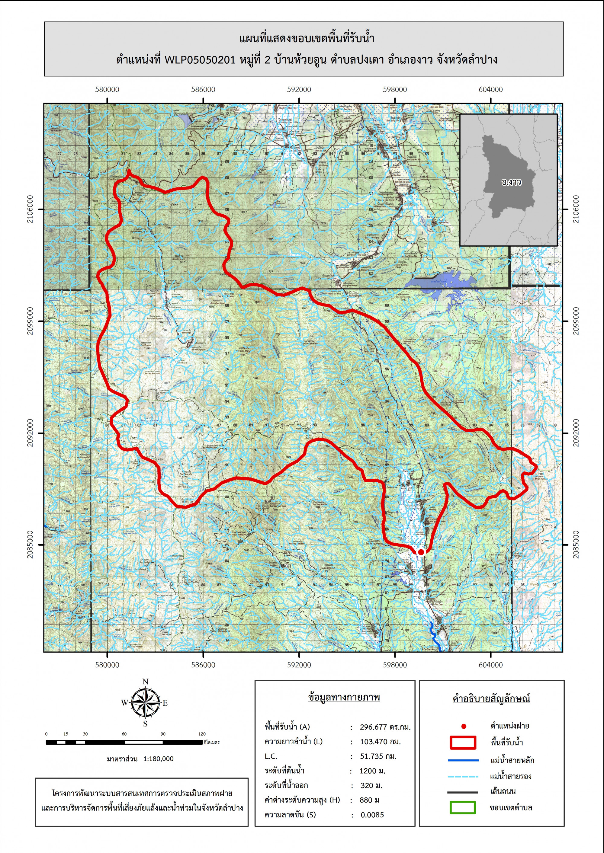 รูปภาพแผนที่แสดงขอบเขตพื้นที่รับน้ำ