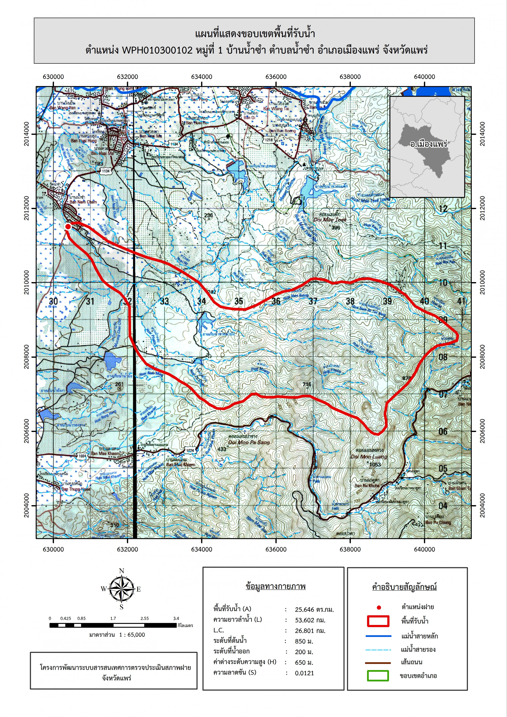 รูปภาพแผนที่แสดงขอบเขตพื้นที่รับน้ำ