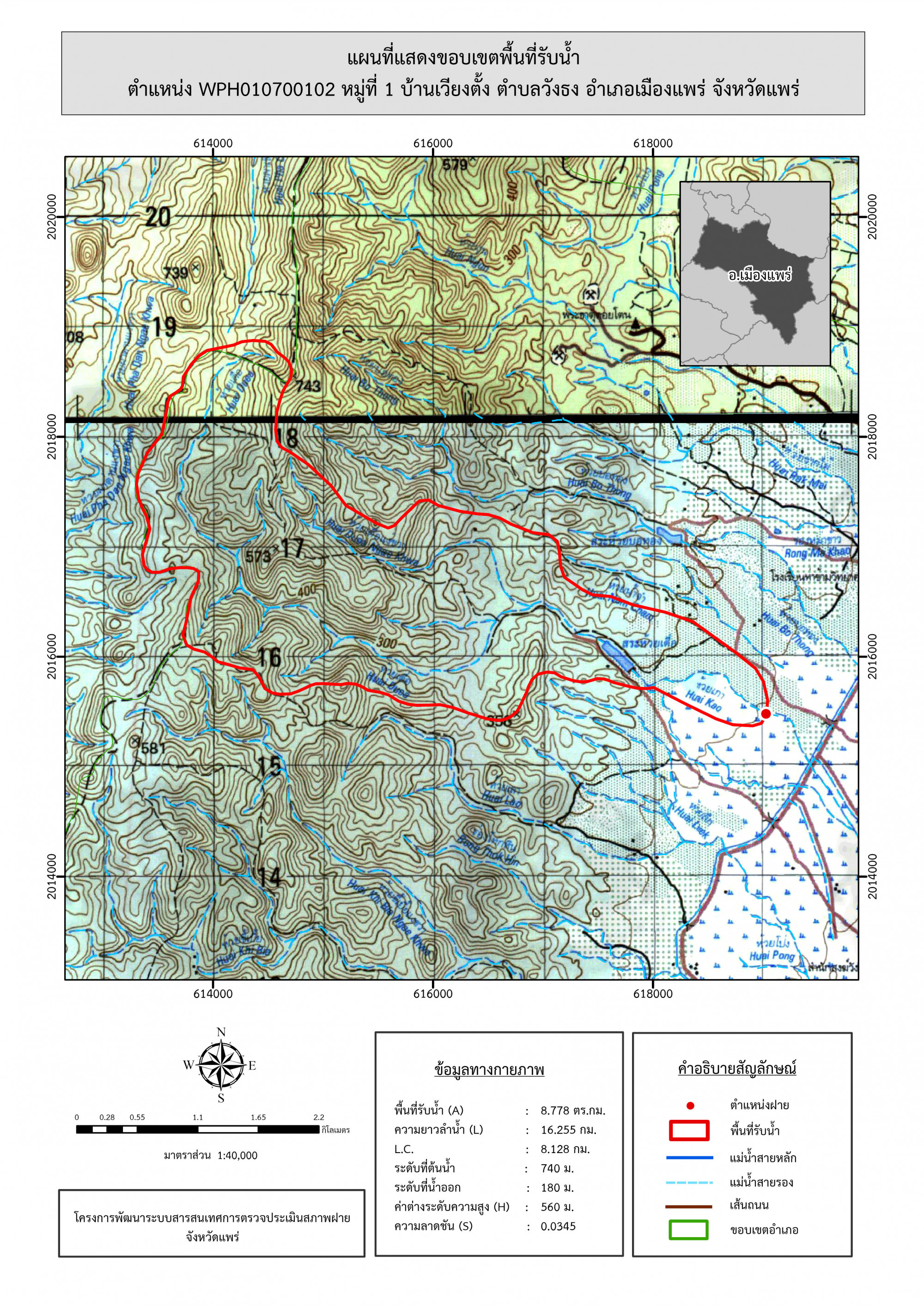 รูปภาพแผนที่แสดงขอบเขตพื้นที่รับน้ำ