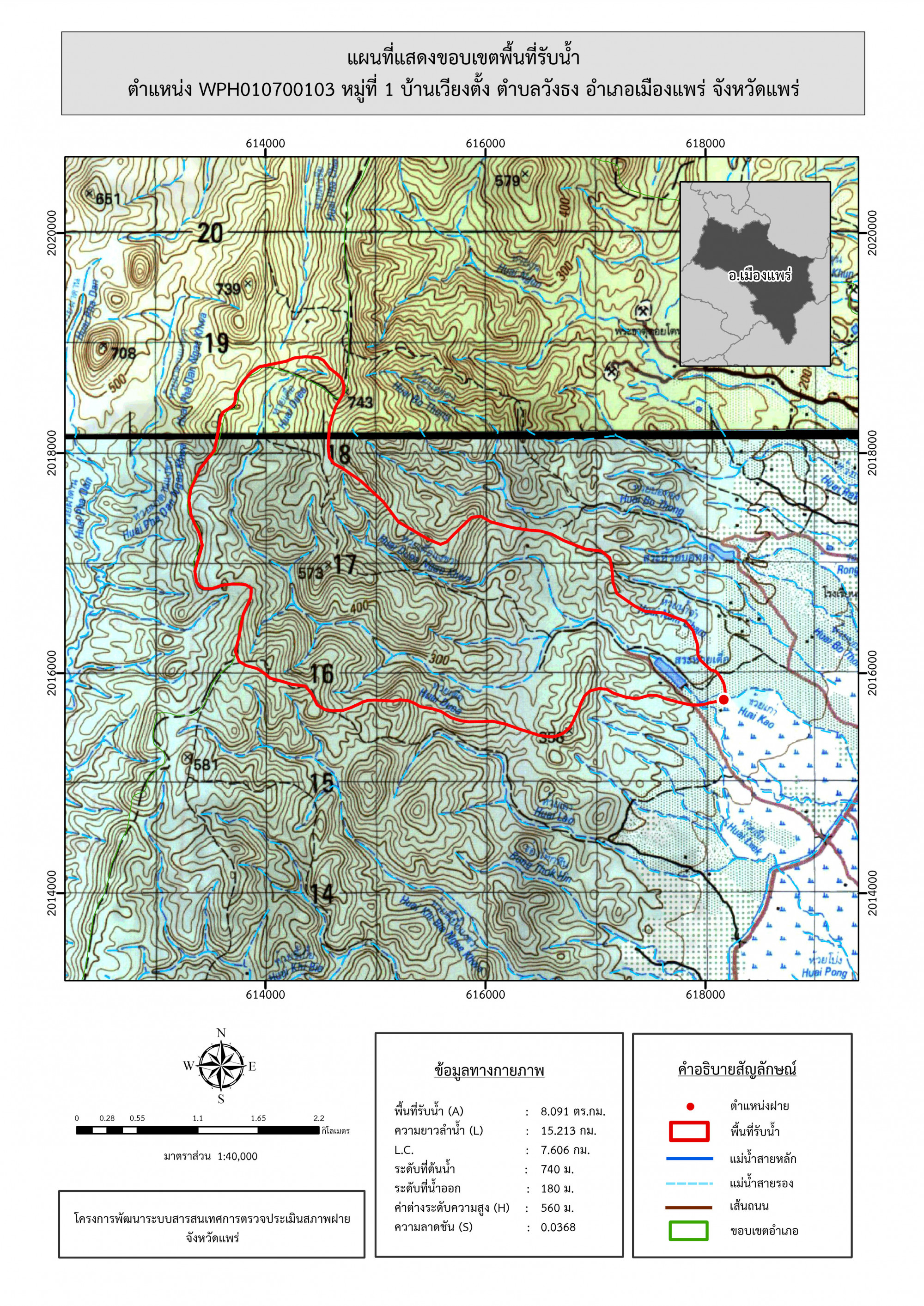 รูปภาพแผนที่แสดงขอบเขตพื้นที่รับน้ำ