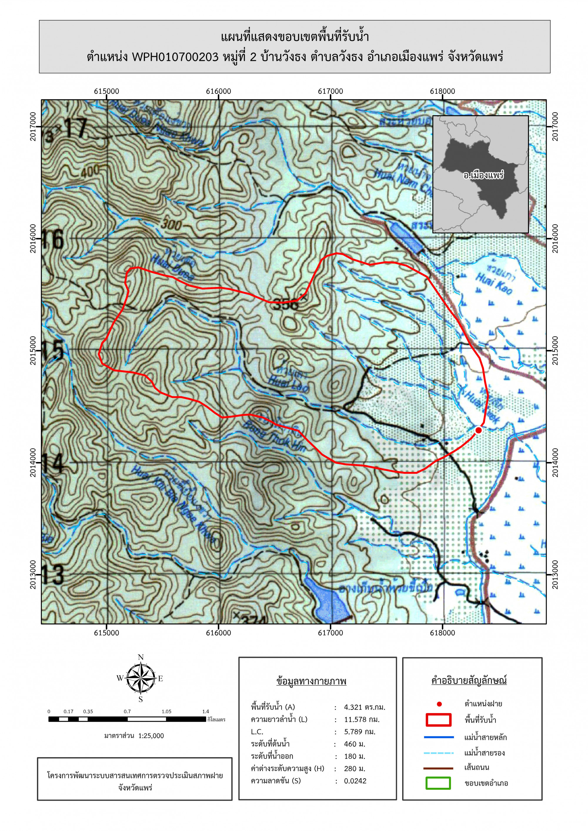 รูปภาพแผนที่แสดงขอบเขตพื้นที่รับน้ำ