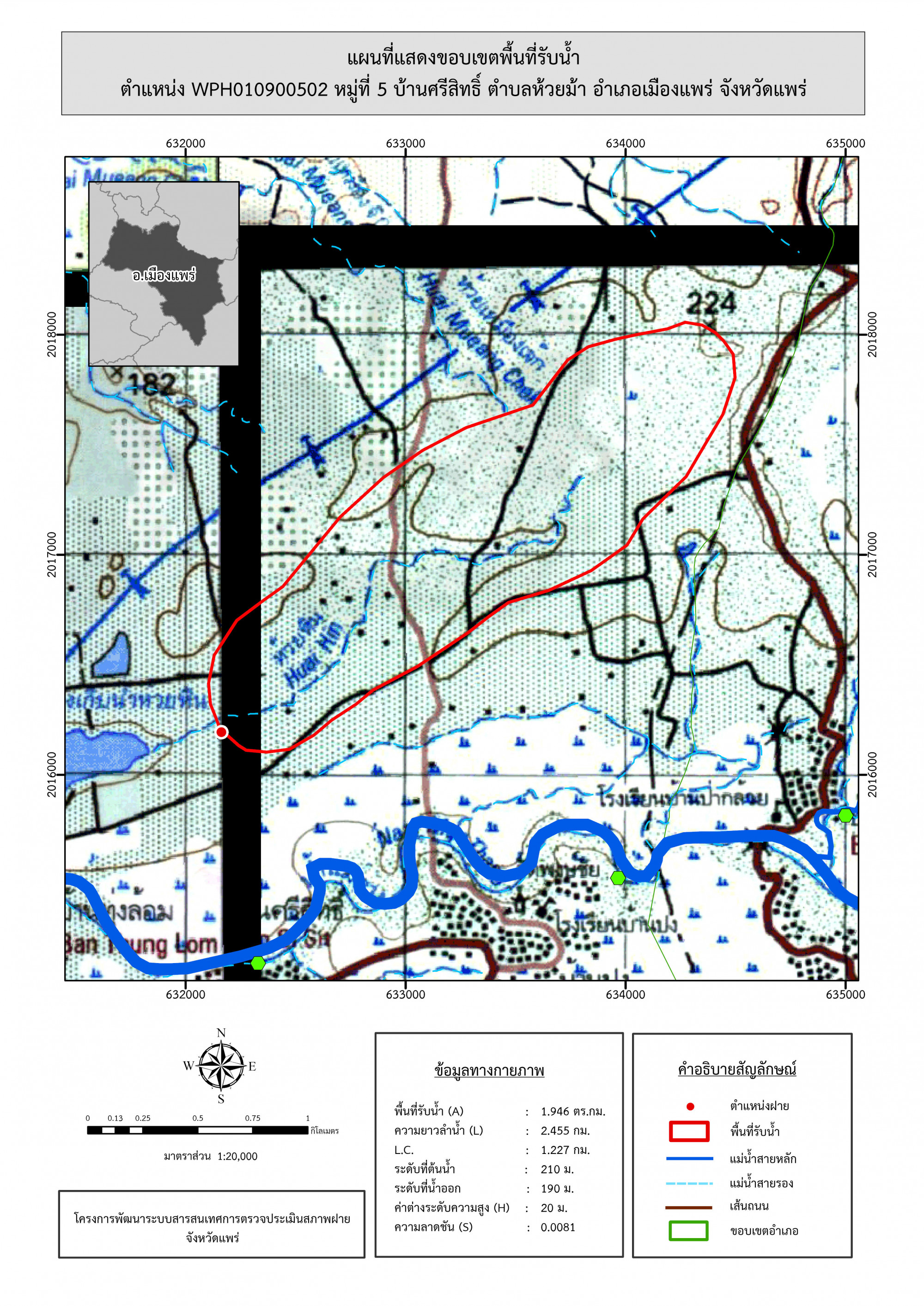 รูปภาพแผนที่แสดงขอบเขตพื้นที่รับน้ำ