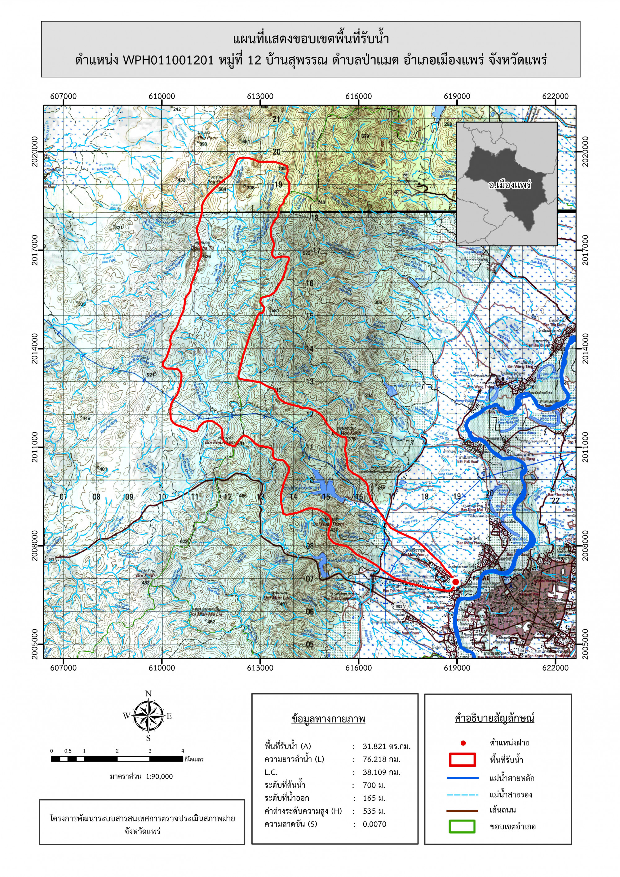 รูปภาพแผนที่แสดงขอบเขตพื้นที่รับน้ำ
