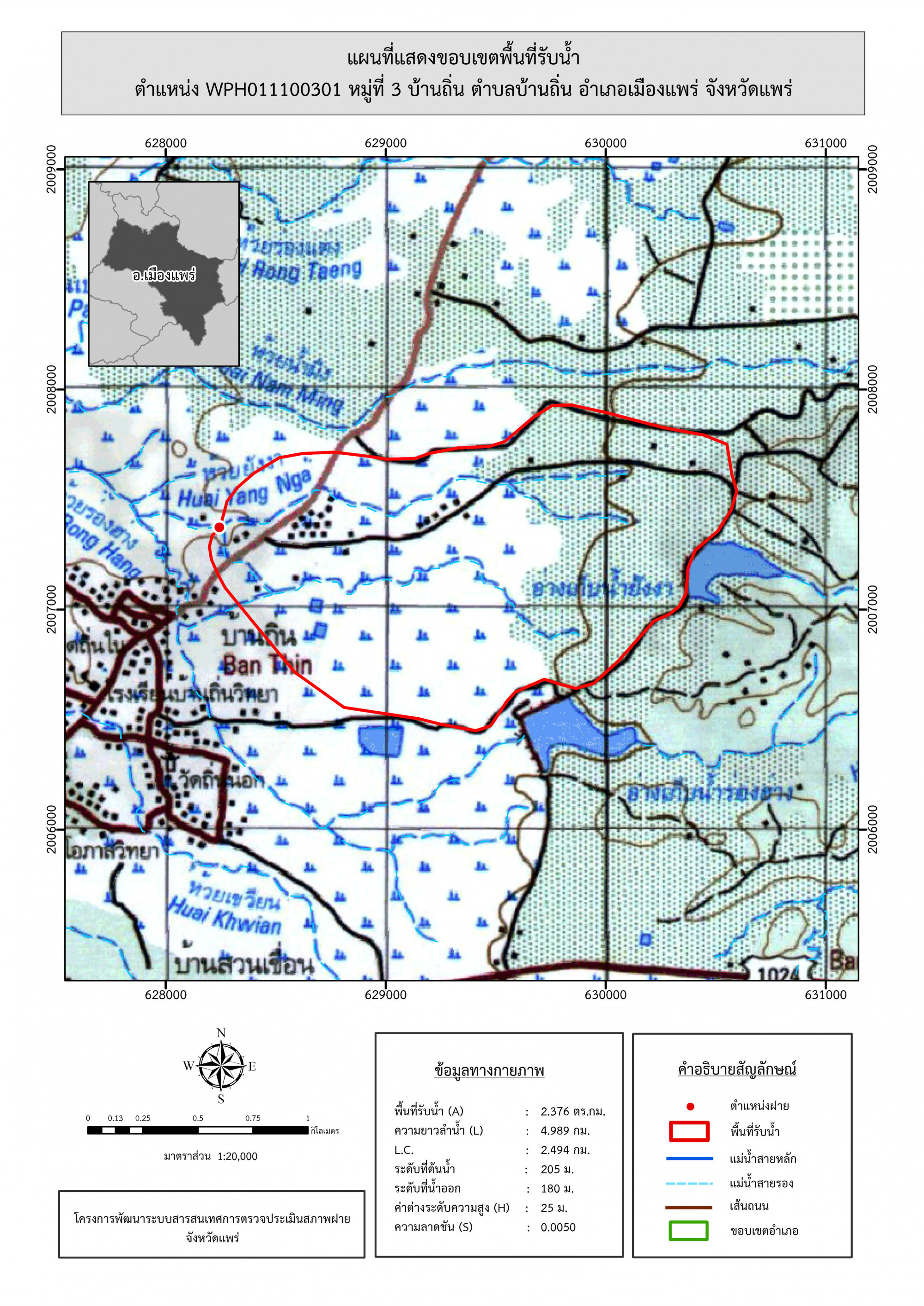 รูปภาพแผนที่แสดงขอบเขตพื้นที่รับน้ำ
