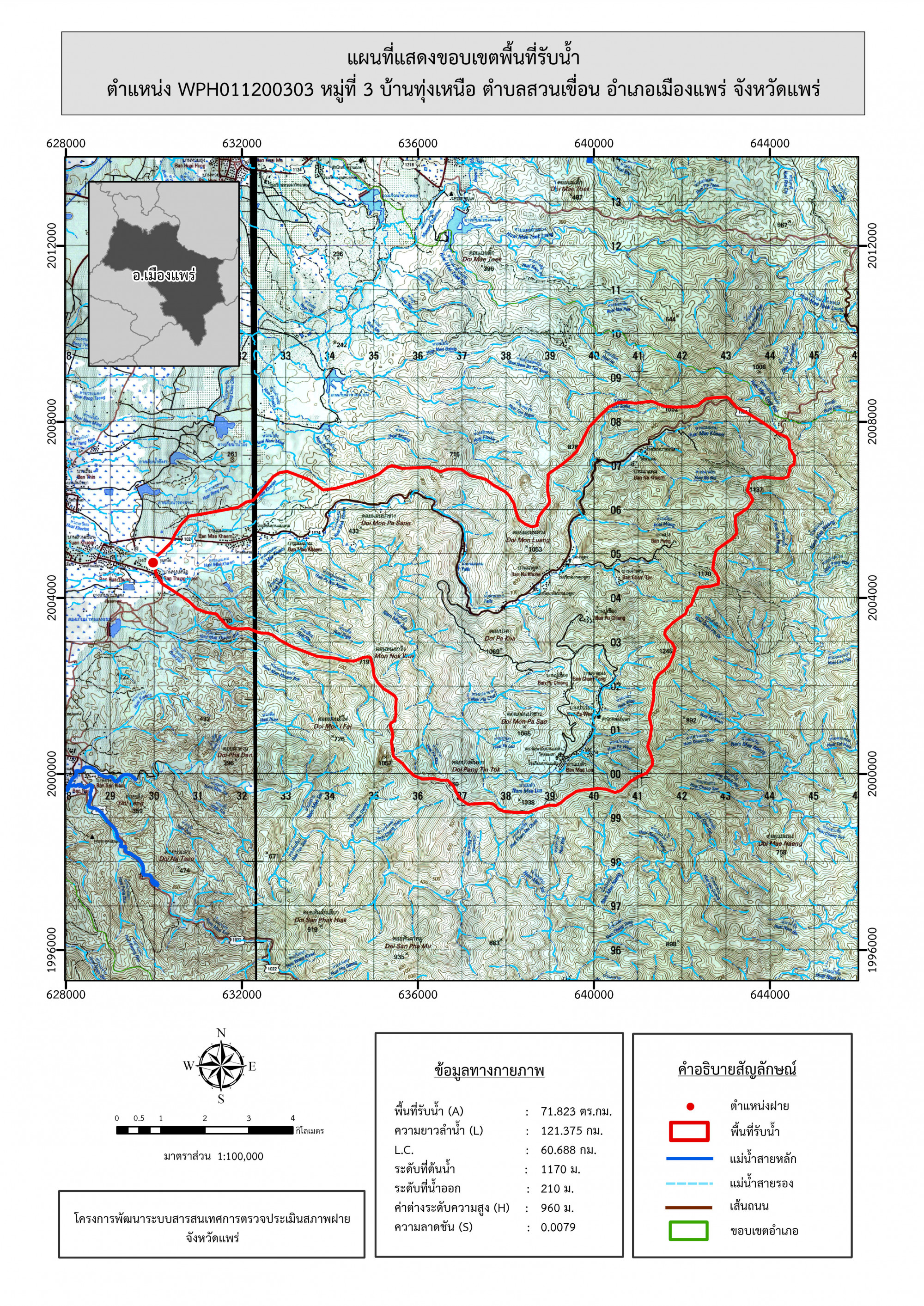 รูปภาพแผนที่แสดงขอบเขตพื้นที่รับน้ำ