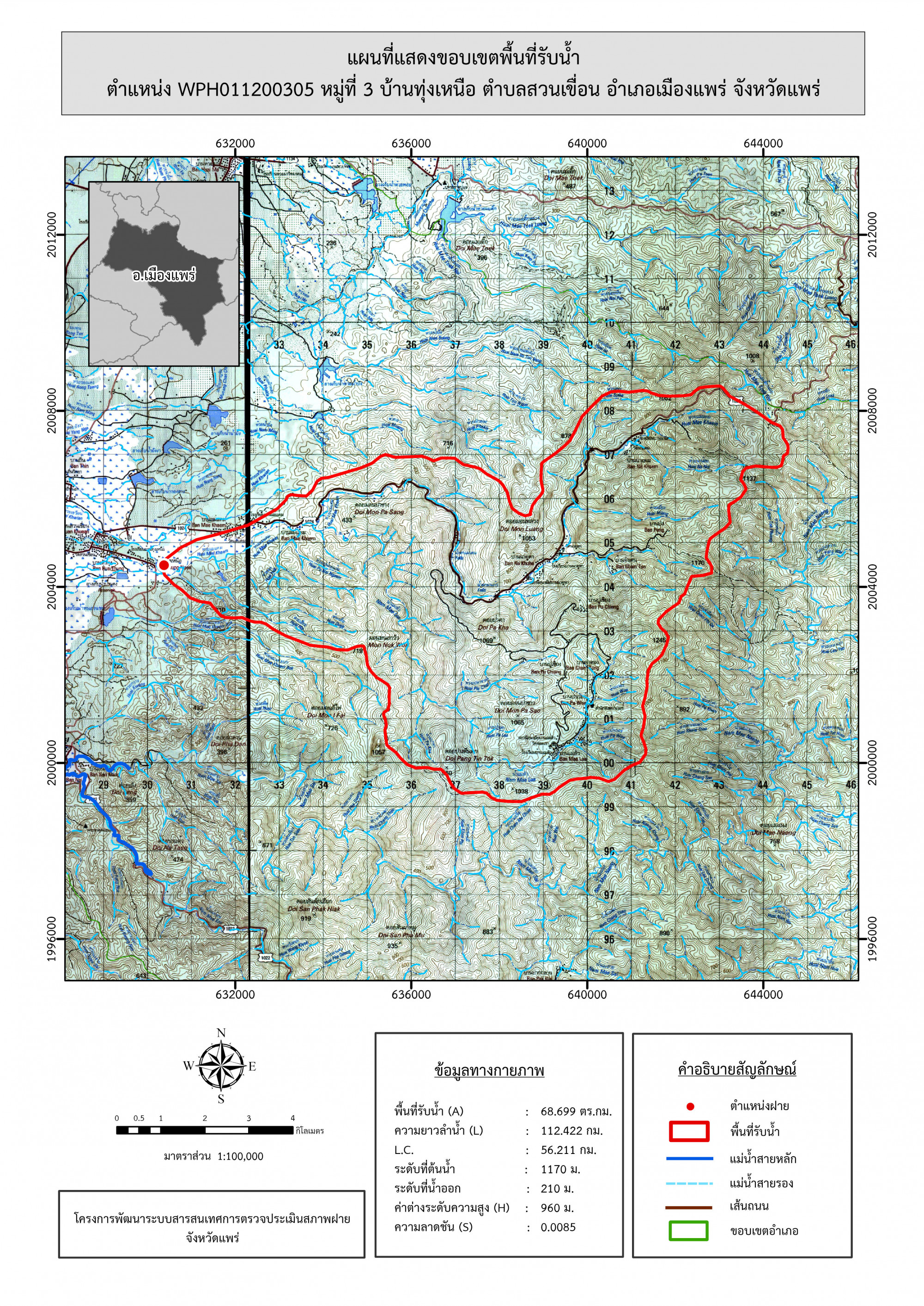 รูปภาพแผนที่แสดงขอบเขตพื้นที่รับน้ำ