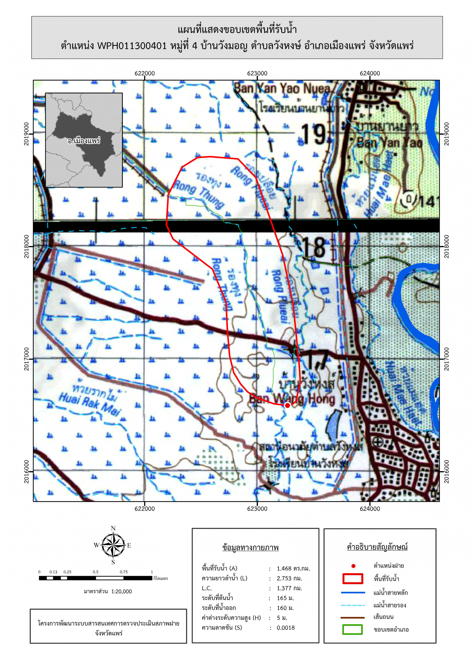 รูปภาพแผนที่แสดงขอบเขตพื้นที่รับน้ำ