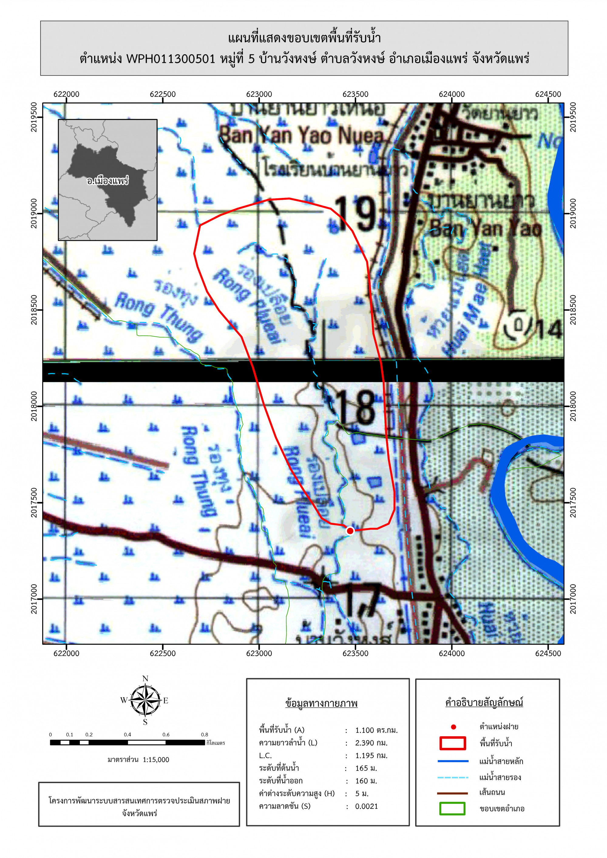 รูปภาพแผนที่แสดงขอบเขตพื้นที่รับน้ำ
