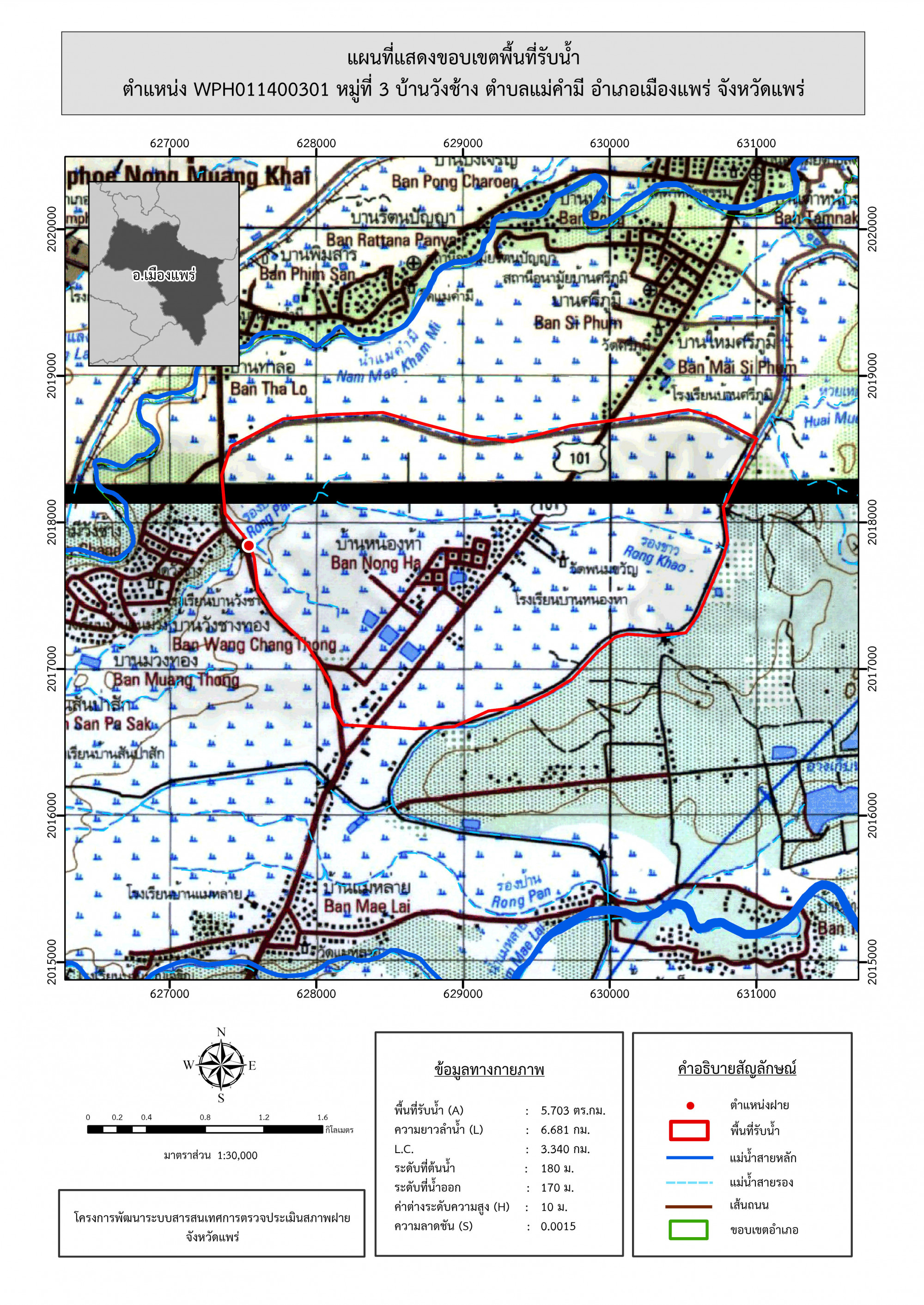 รูปภาพแผนที่แสดงขอบเขตพื้นที่รับน้ำ