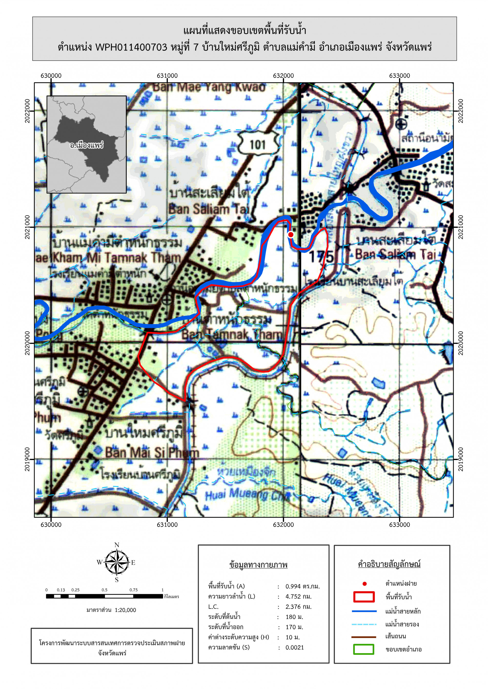 รูปภาพแผนที่แสดงขอบเขตพื้นที่รับน้ำ