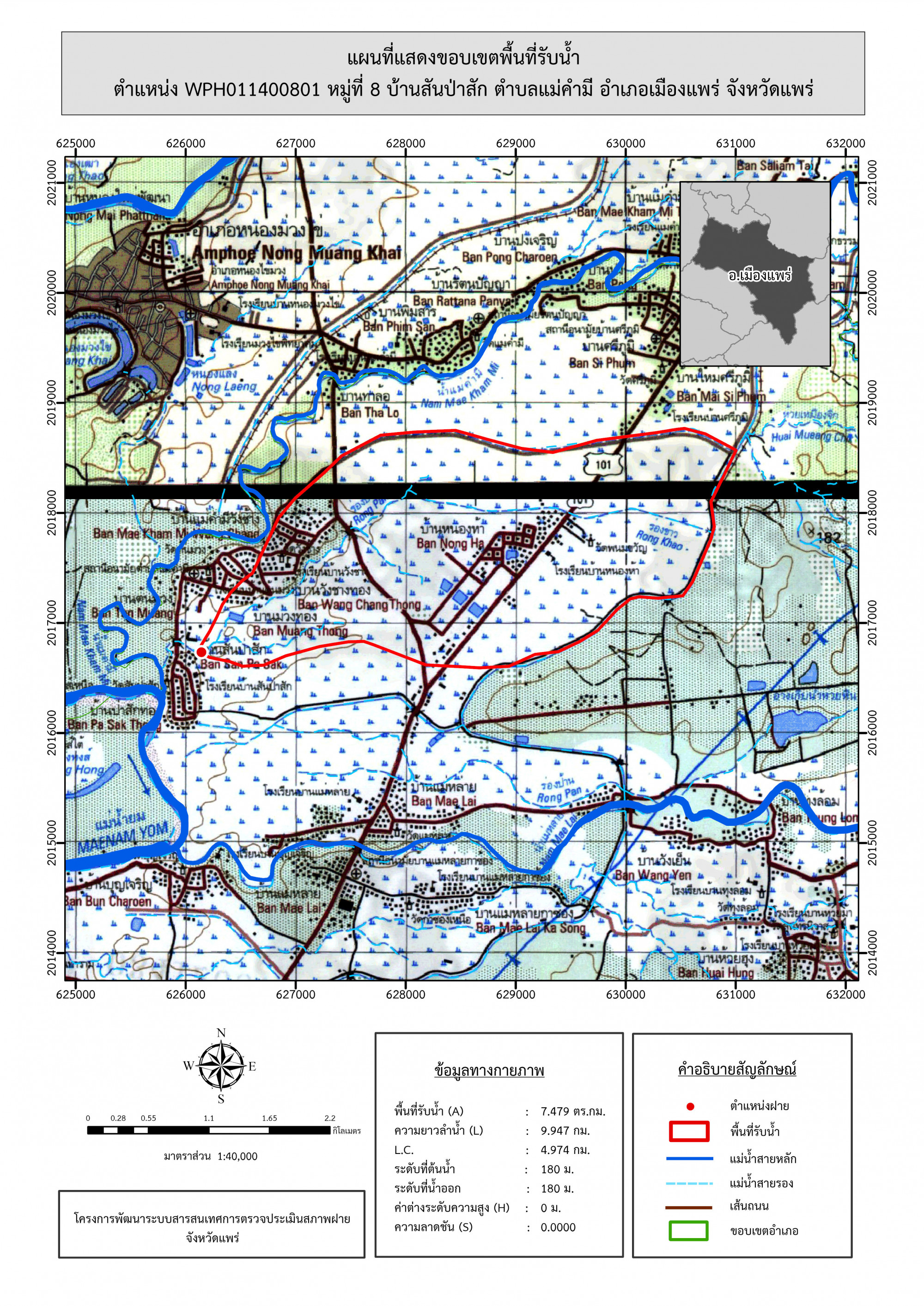 รูปภาพแผนที่แสดงขอบเขตพื้นที่รับน้ำ