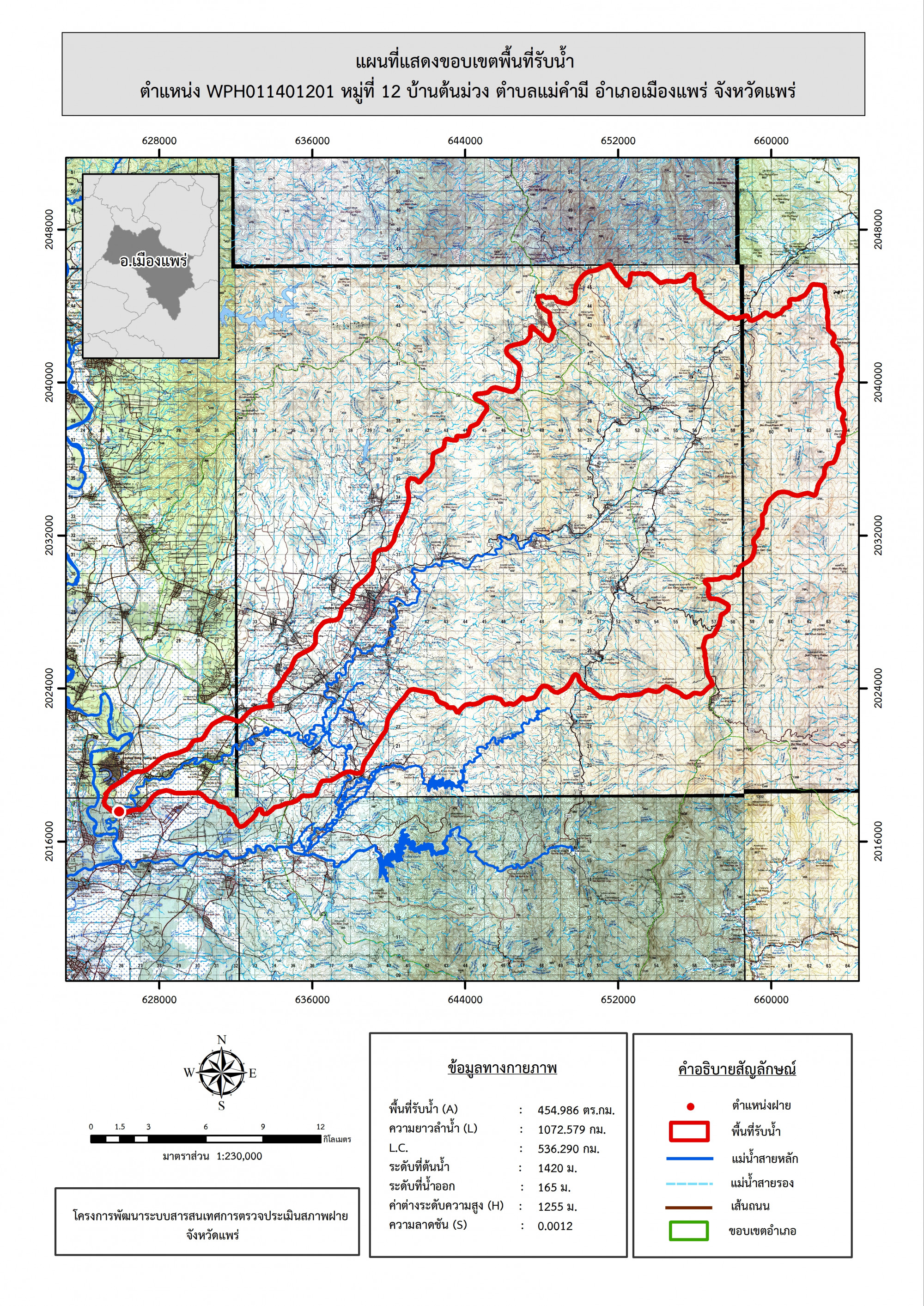รูปภาพแผนที่แสดงขอบเขตพื้นที่รับน้ำ