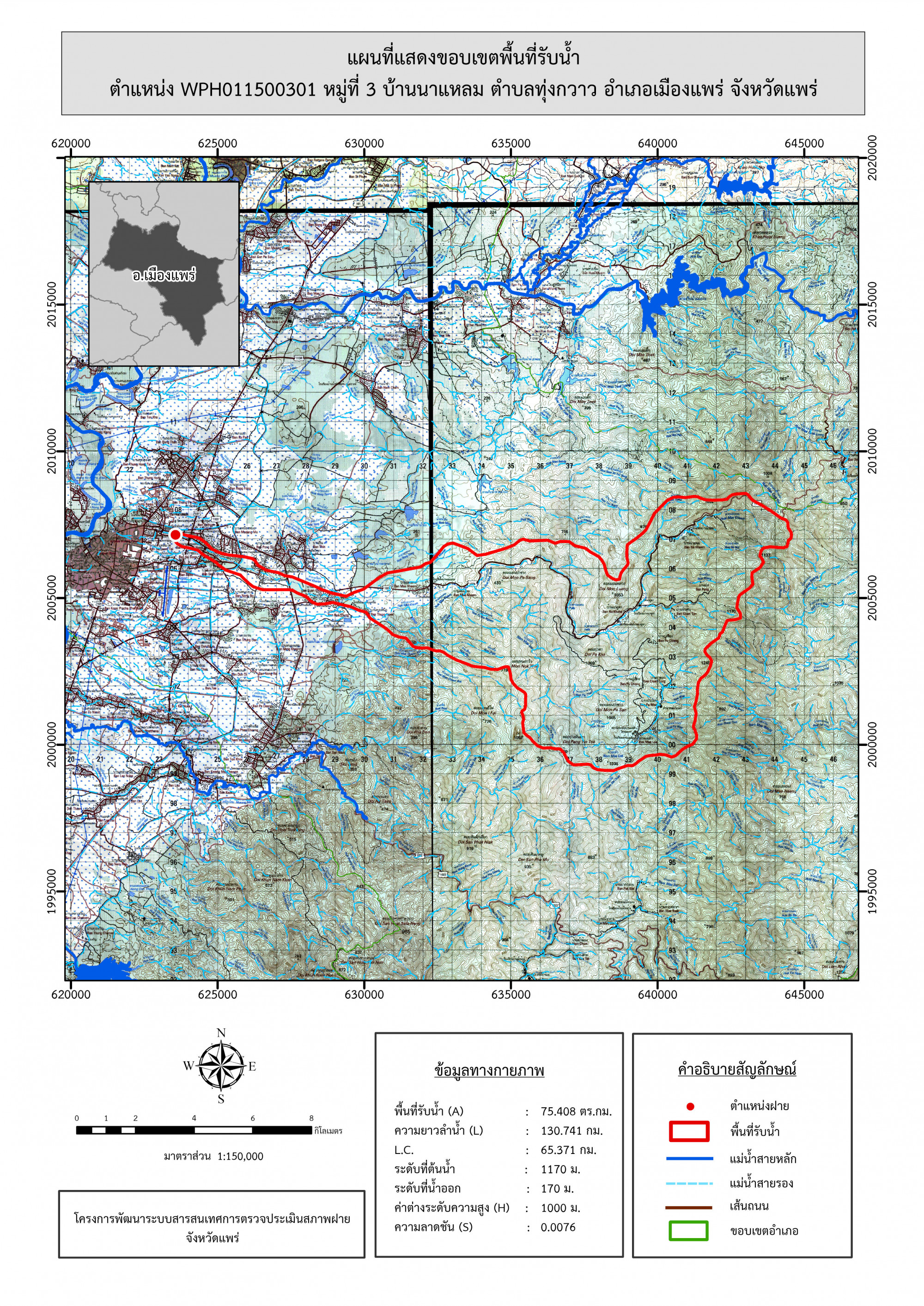 รูปภาพแผนที่แสดงขอบเขตพื้นที่รับน้ำ