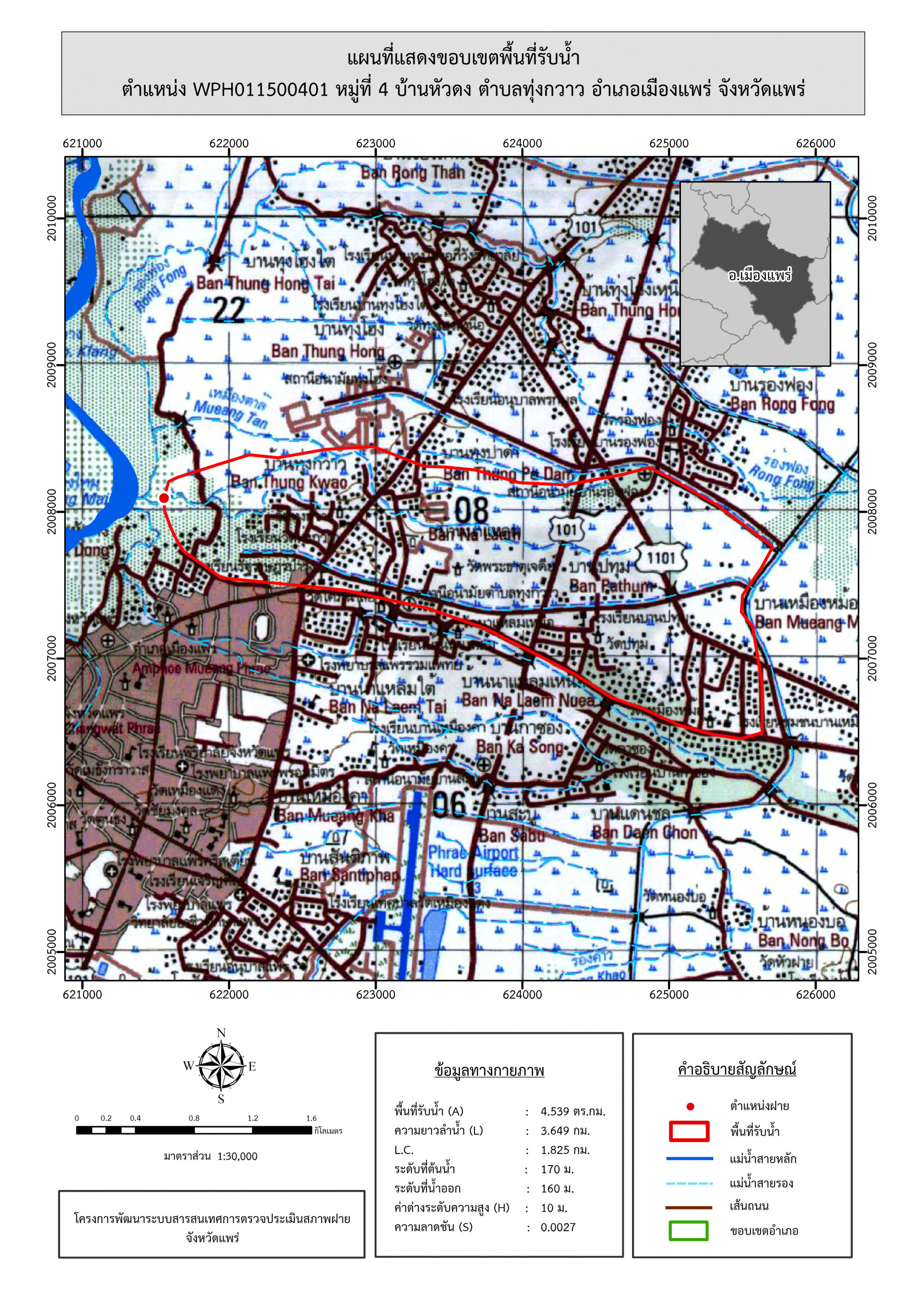 รูปภาพแผนที่แสดงขอบเขตพื้นที่รับน้ำ