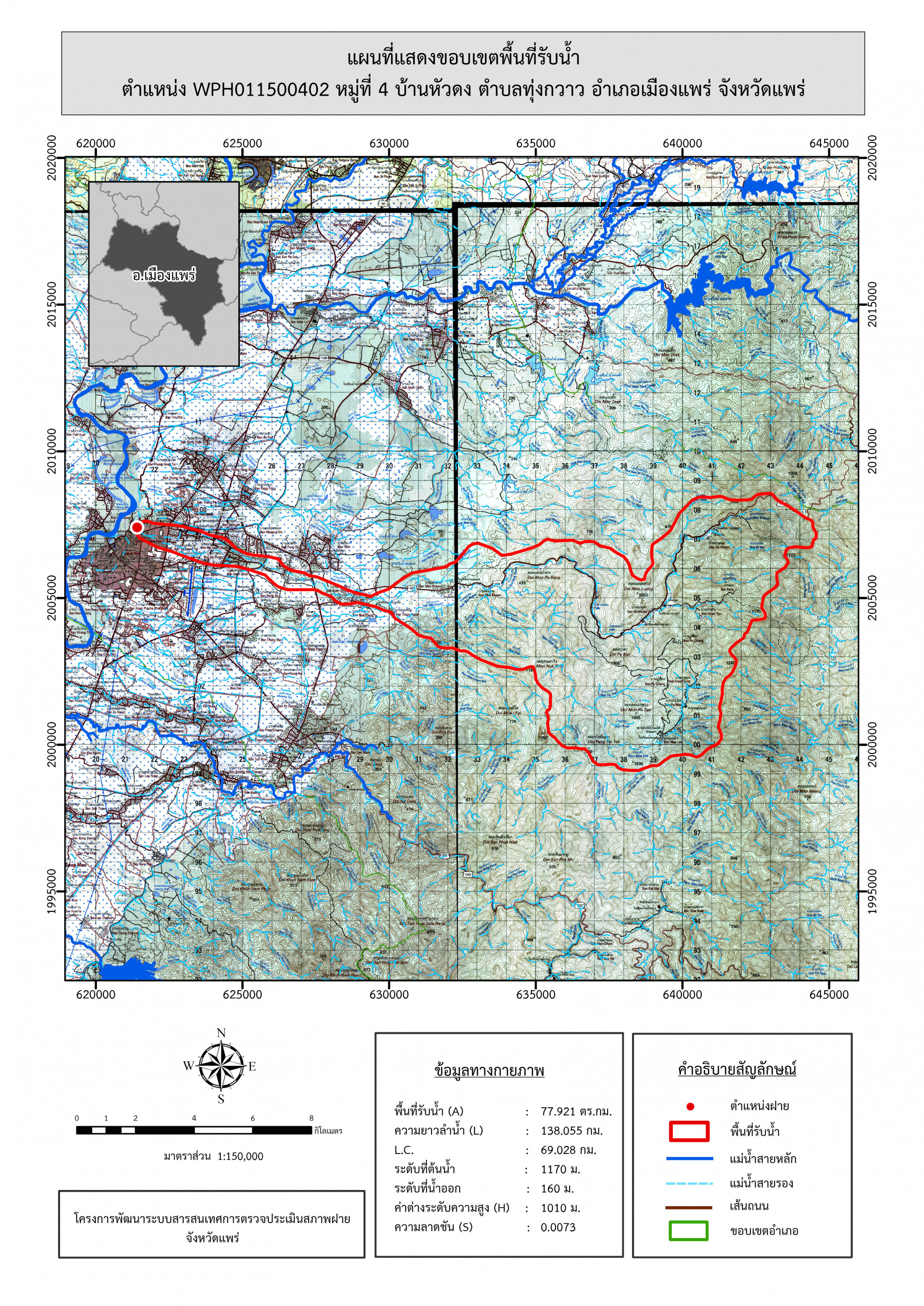รูปภาพแผนที่แสดงขอบเขตพื้นที่รับน้ำ