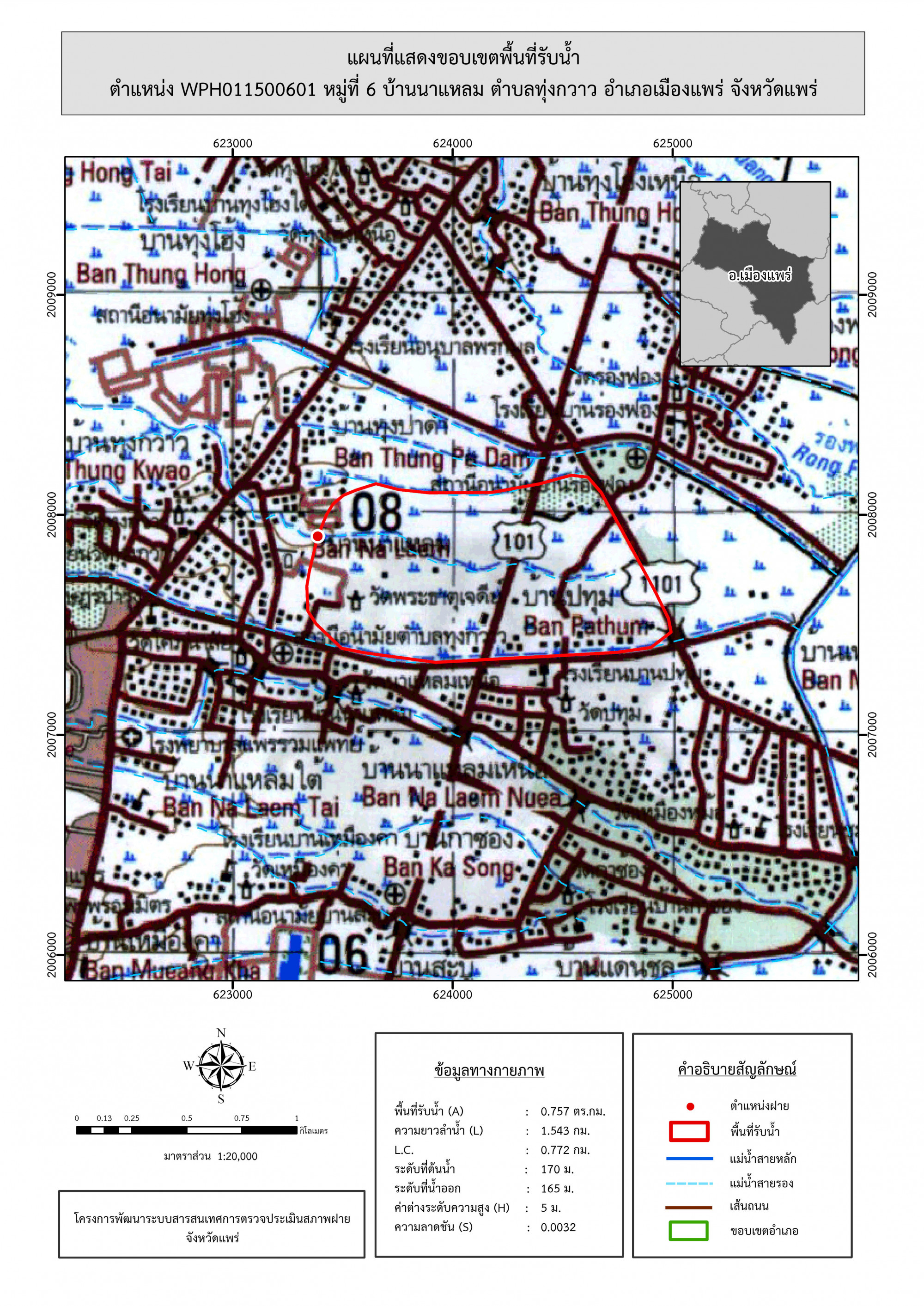 รูปภาพแผนที่แสดงขอบเขตพื้นที่รับน้ำ