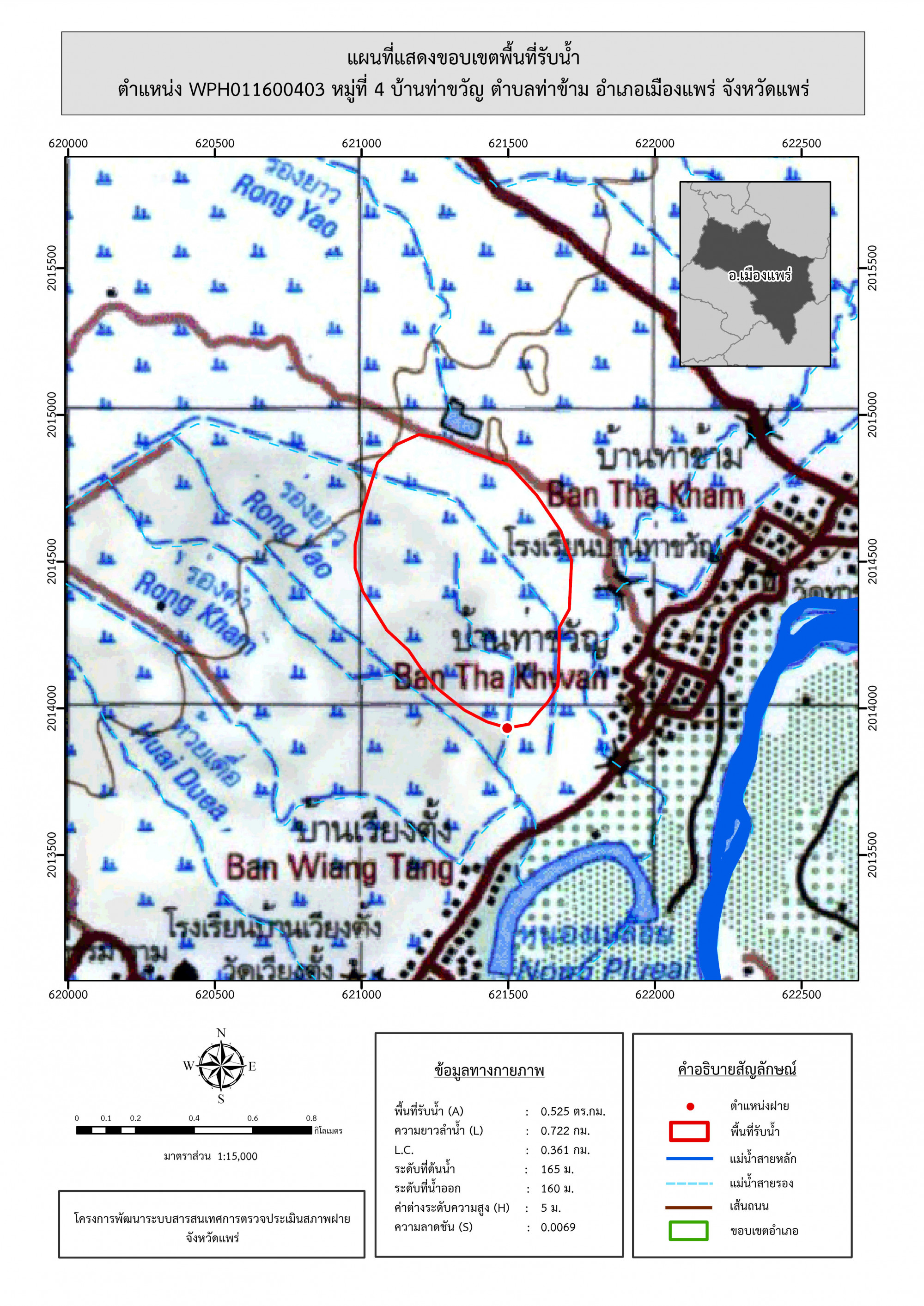 รูปภาพแผนที่แสดงขอบเขตพื้นที่รับน้ำ