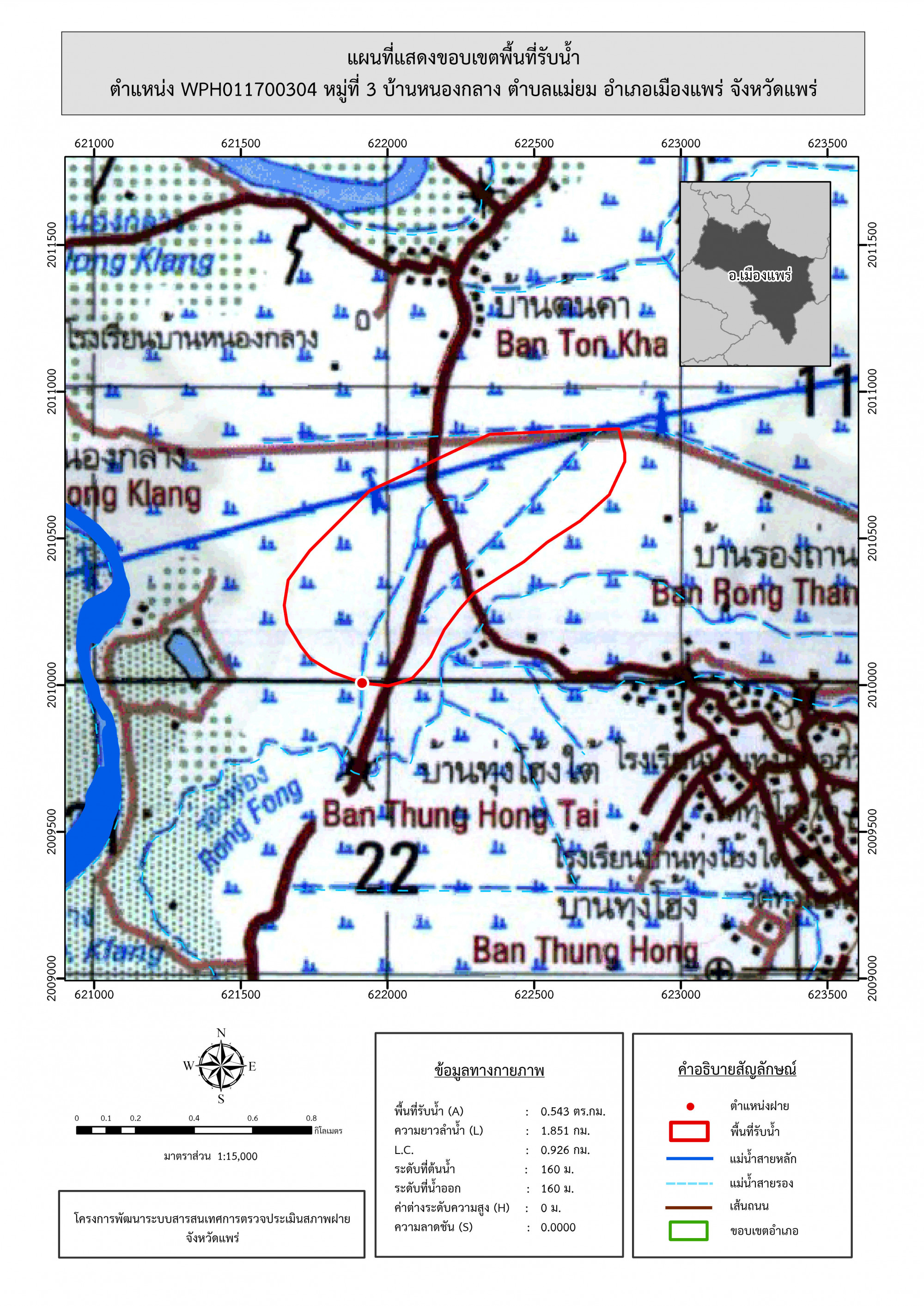 รูปภาพแผนที่แสดงขอบเขตพื้นที่รับน้ำ