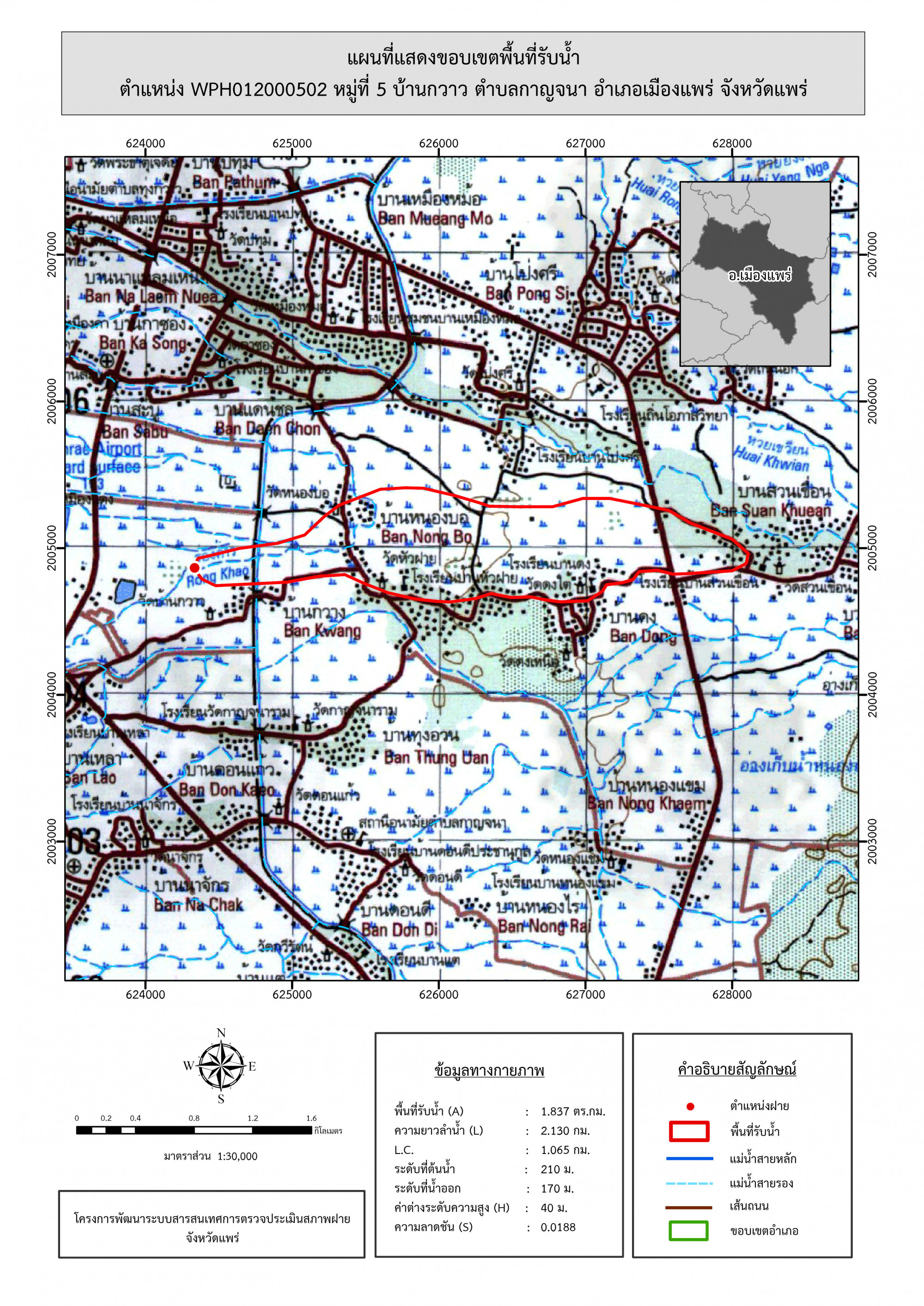 รูปภาพแผนที่แสดงขอบเขตพื้นที่รับน้ำ