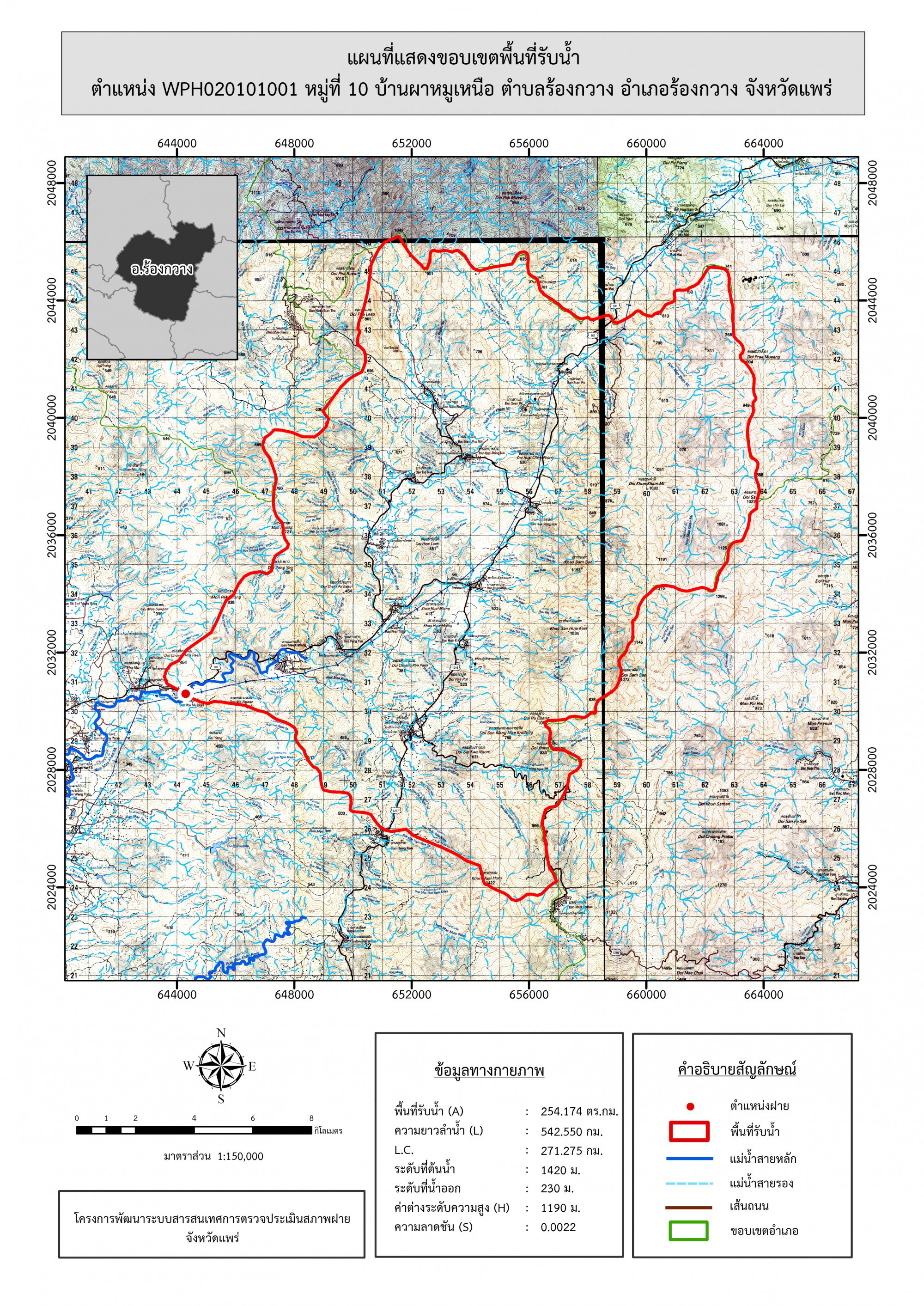 รูปภาพแผนที่แสดงขอบเขตพื้นที่รับน้ำ