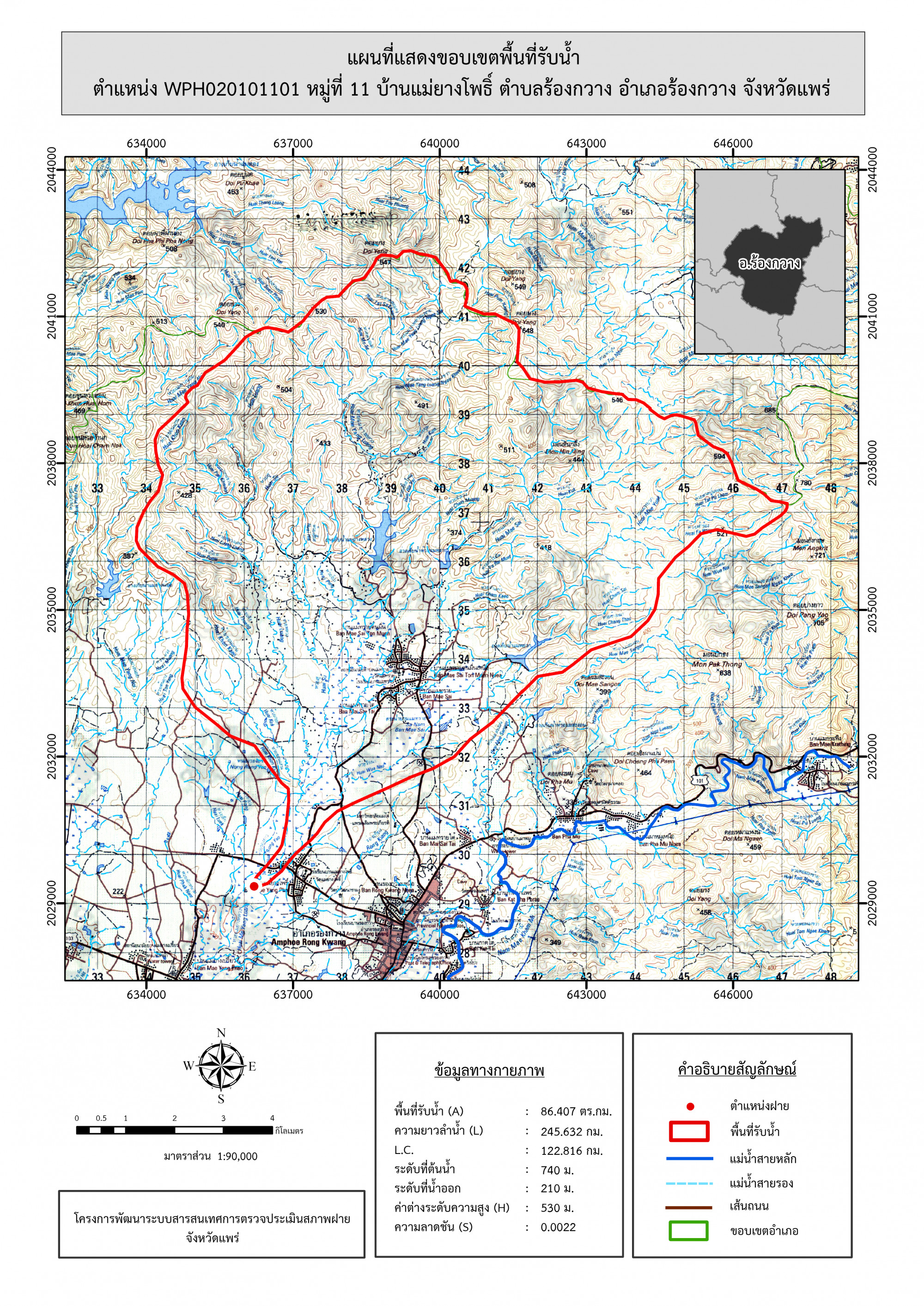 รูปภาพแผนที่แสดงขอบเขตพื้นที่รับน้ำ