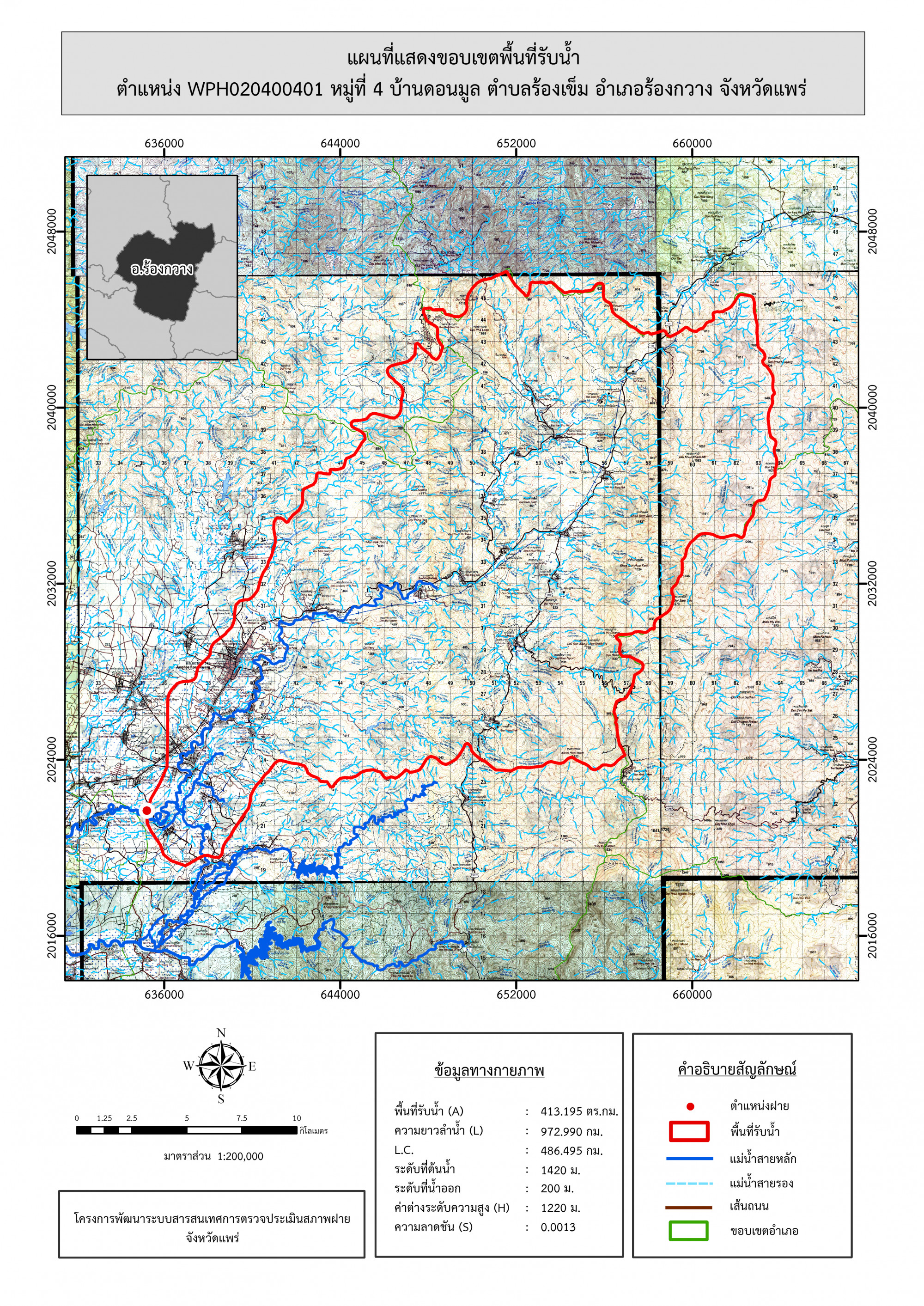 รูปภาพแผนที่แสดงขอบเขตพื้นที่รับน้ำ