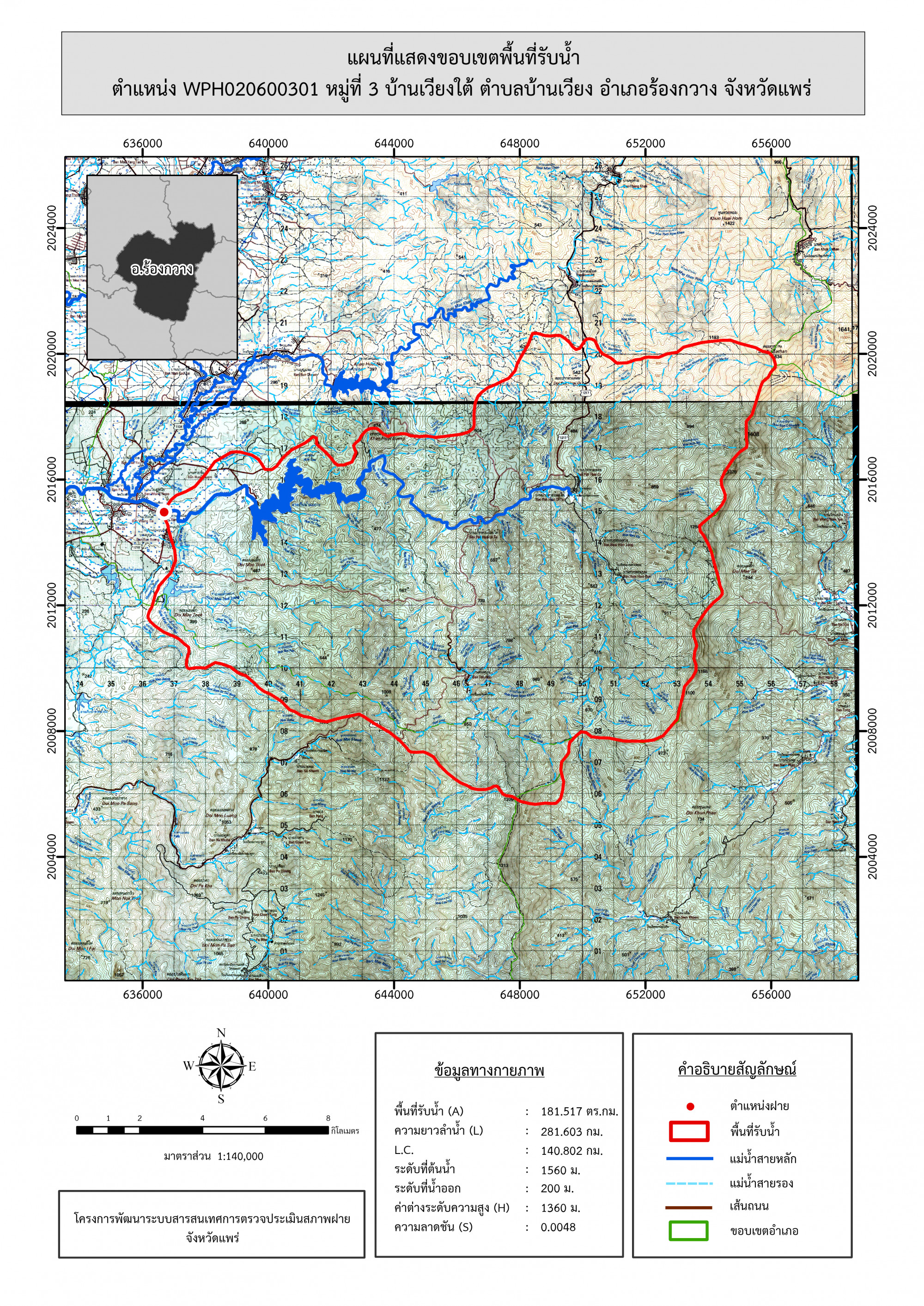รูปภาพแผนที่แสดงขอบเขตพื้นที่รับน้ำ