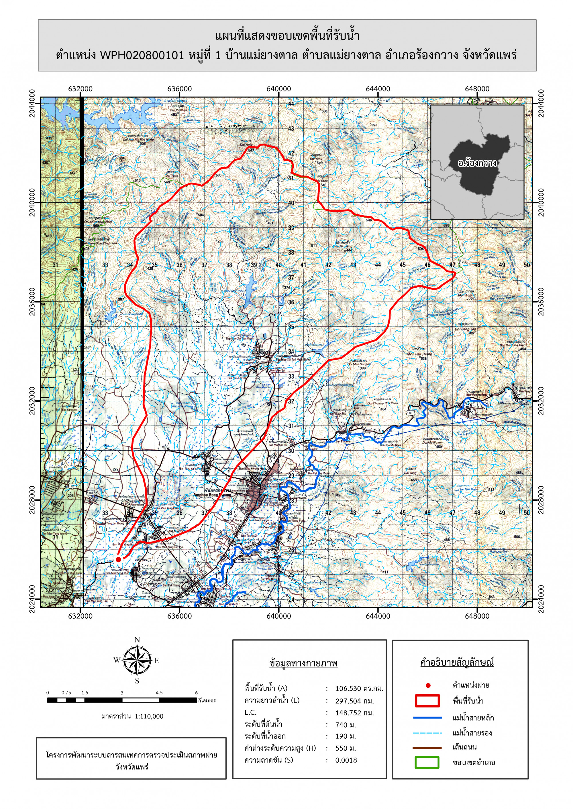รูปภาพแผนที่แสดงขอบเขตพื้นที่รับน้ำ